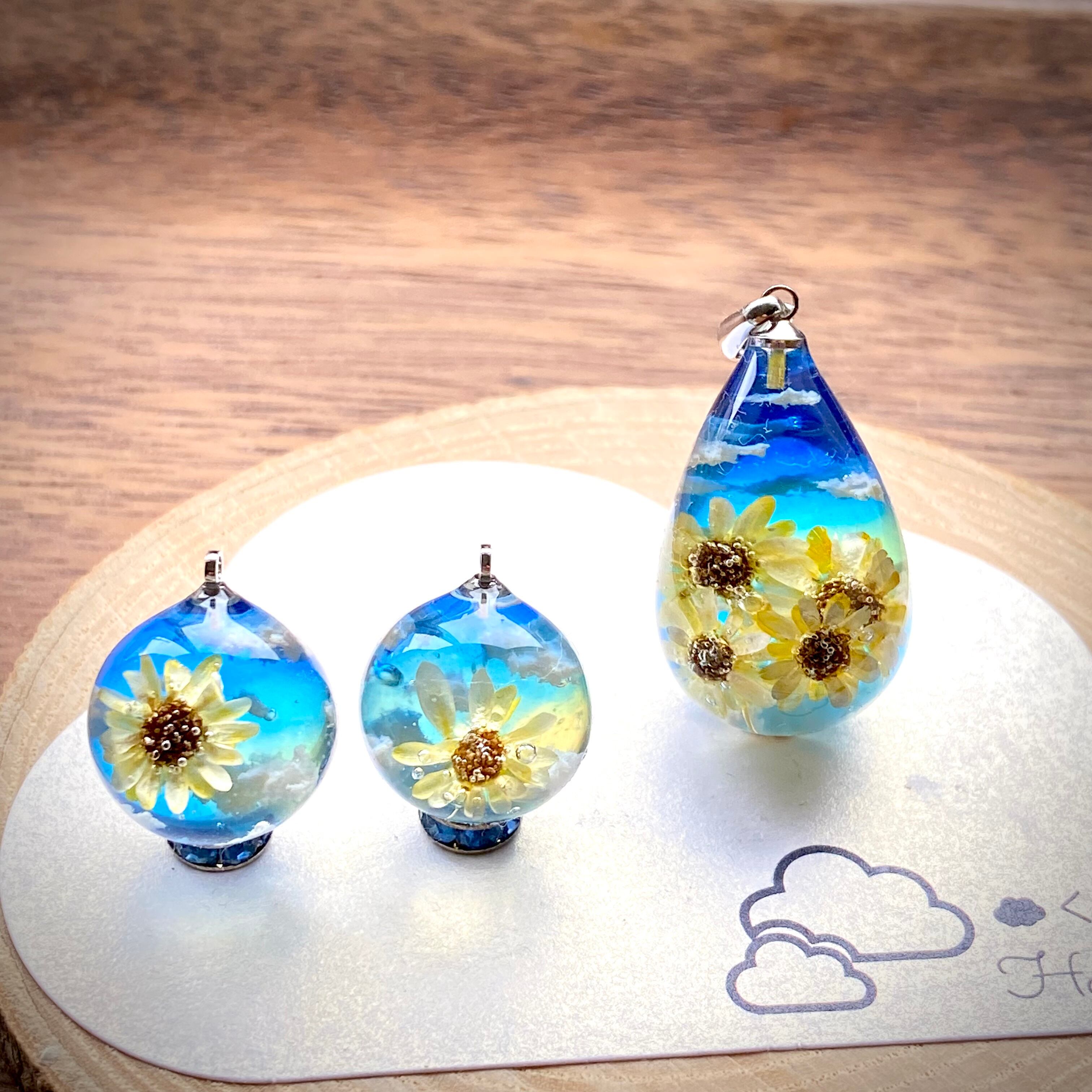 ひまわりと青空のまん丸なピアスを制作してみました。