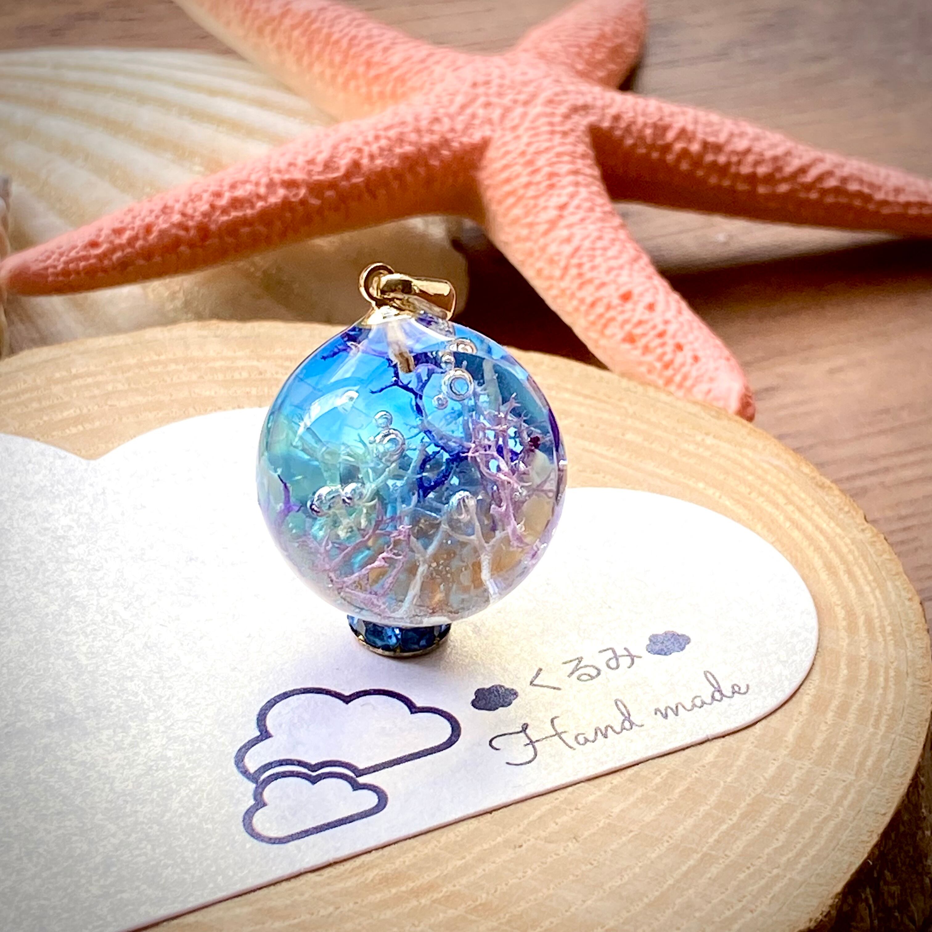 2割カット球体で珊瑚の海のペンダントを作りました。