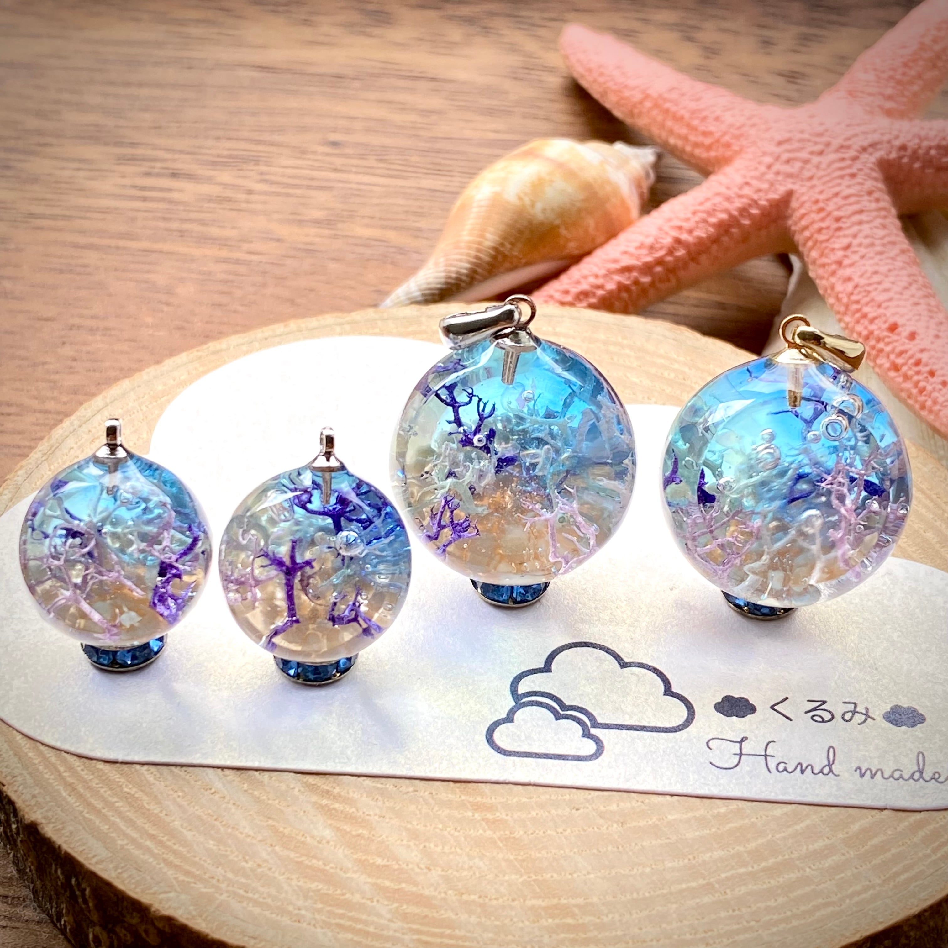 2割カット球体で珊瑚の海のペンダントを作りました。