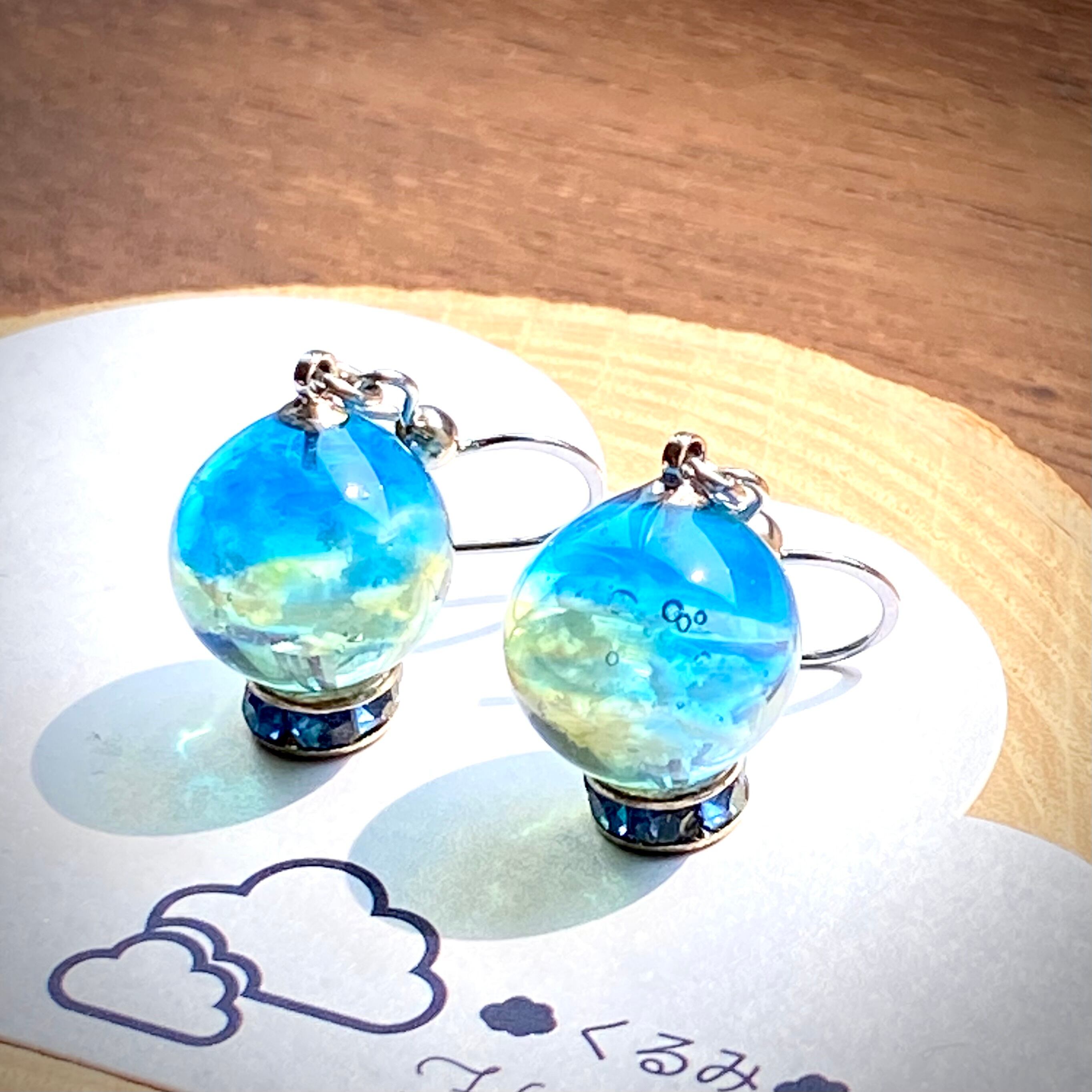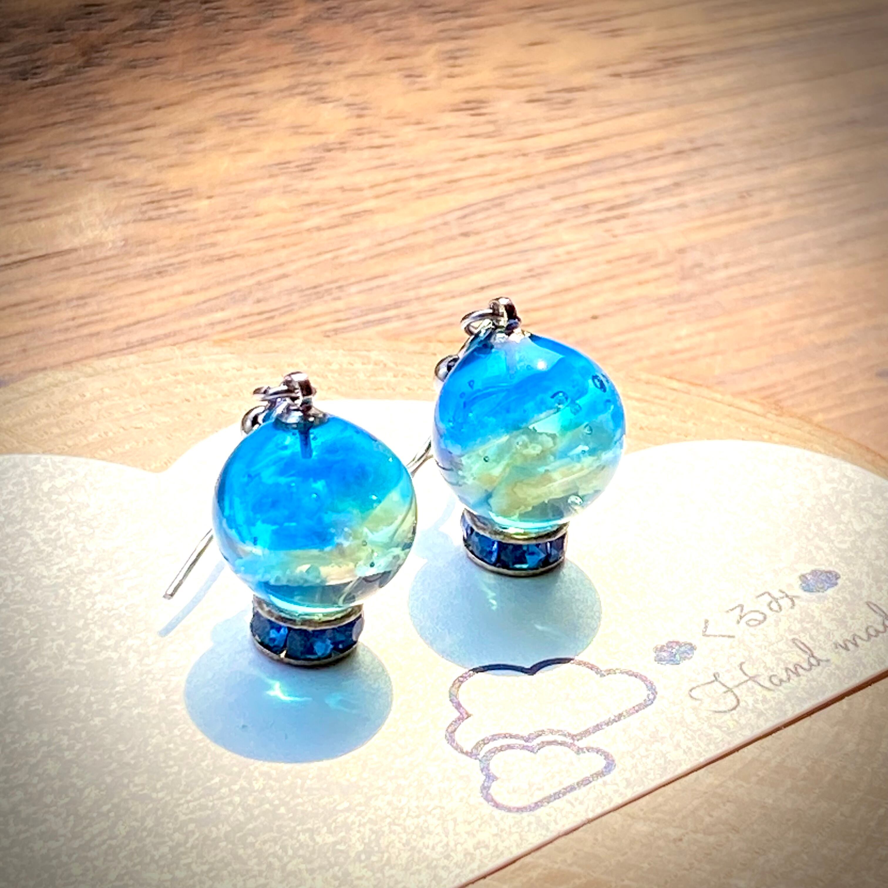 青空をイメージしてまん丸なピアスを作りました。