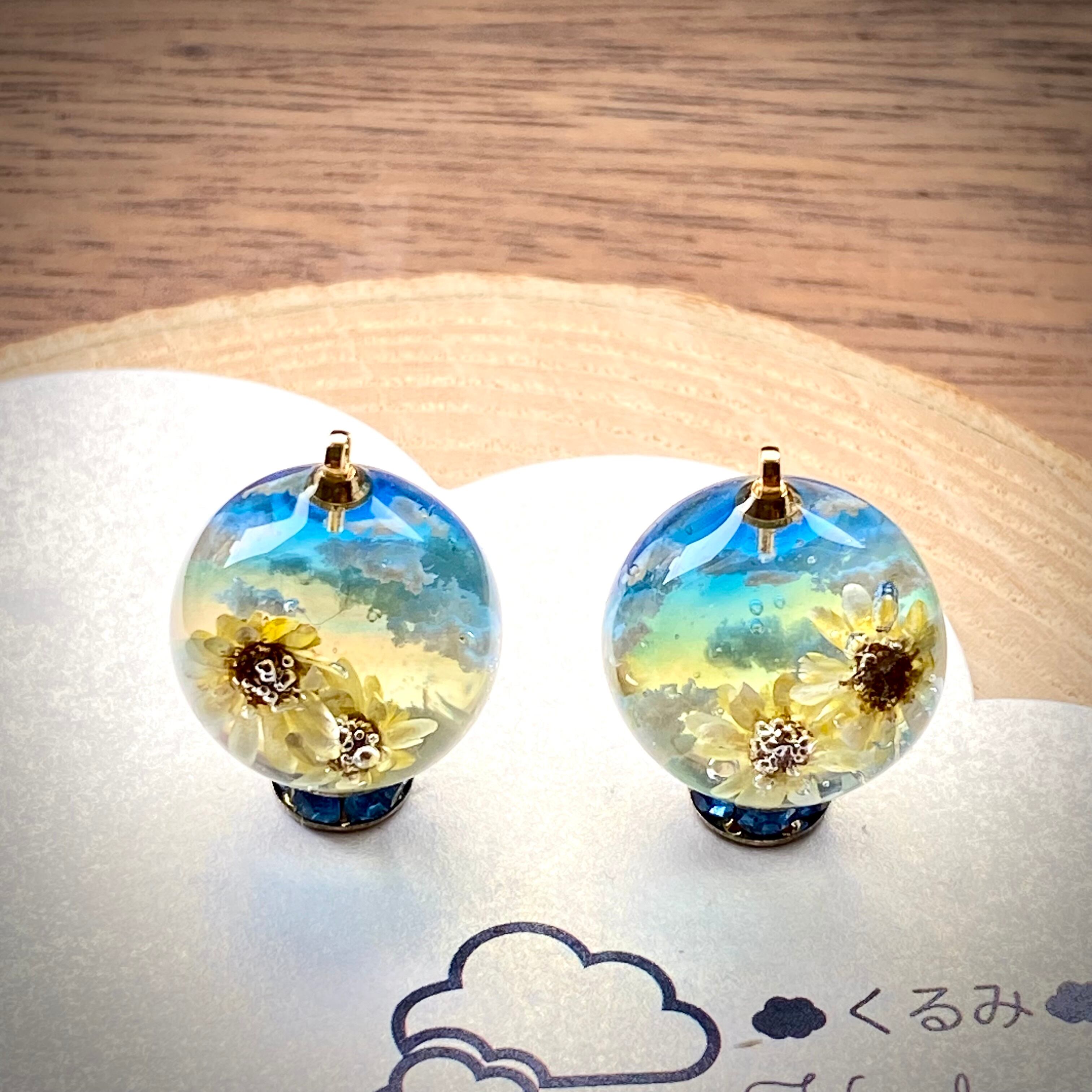 ひまわりと青空のピアスを作りました。
