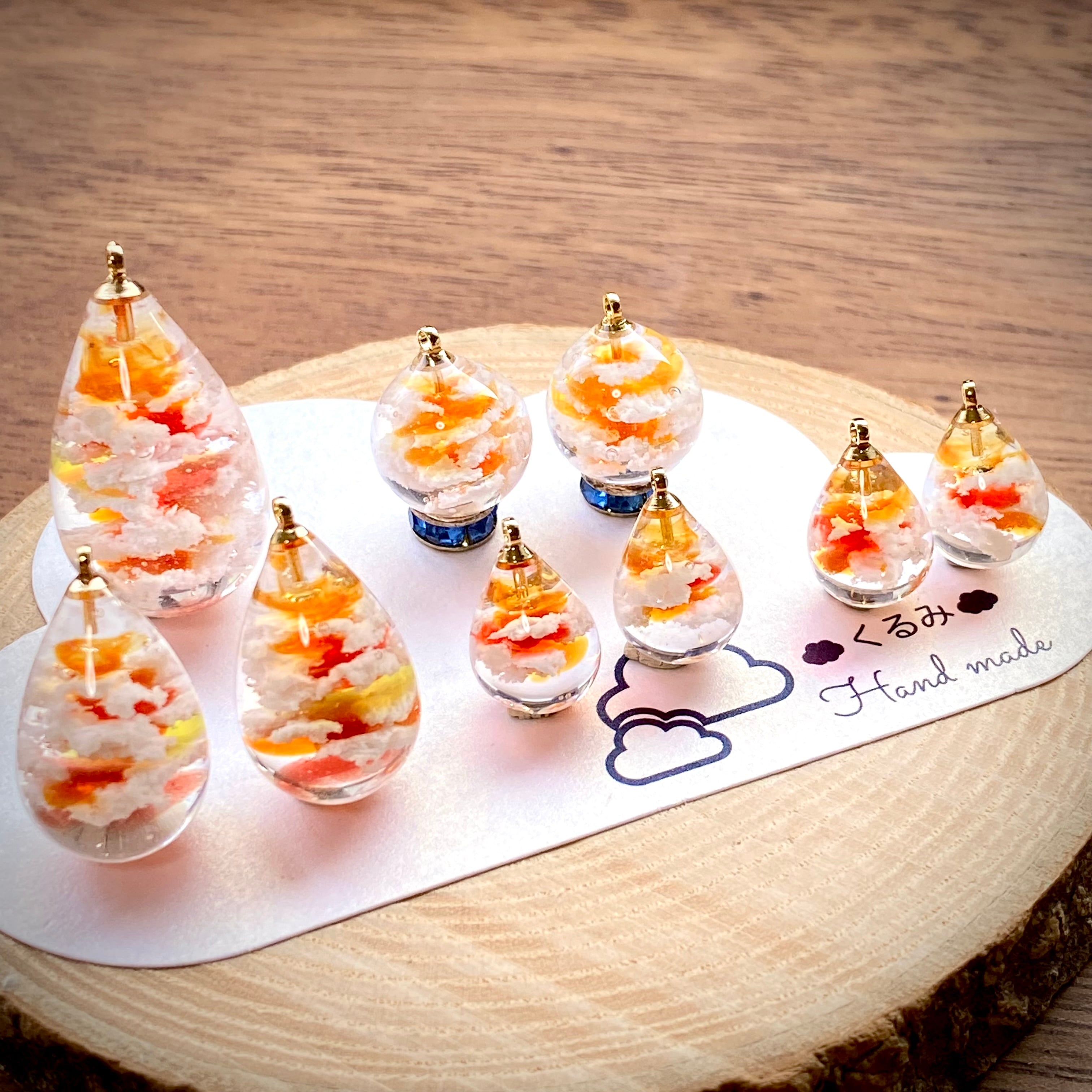 夕焼け空をイメージしてしずく型ピアスを作りました。