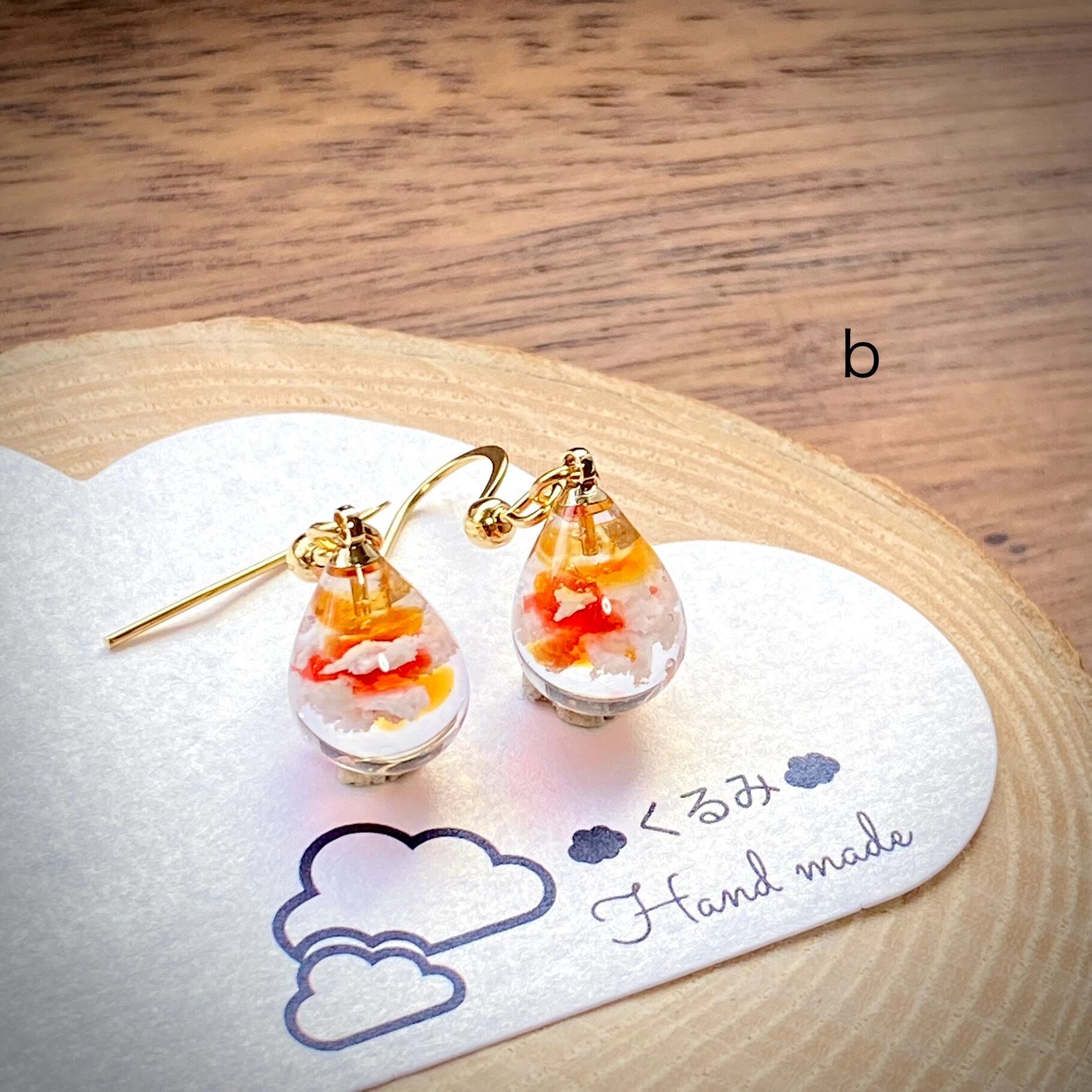 レジンピアス イヤリング 夕焼け空 しずく型 小さめ 12×9mm b