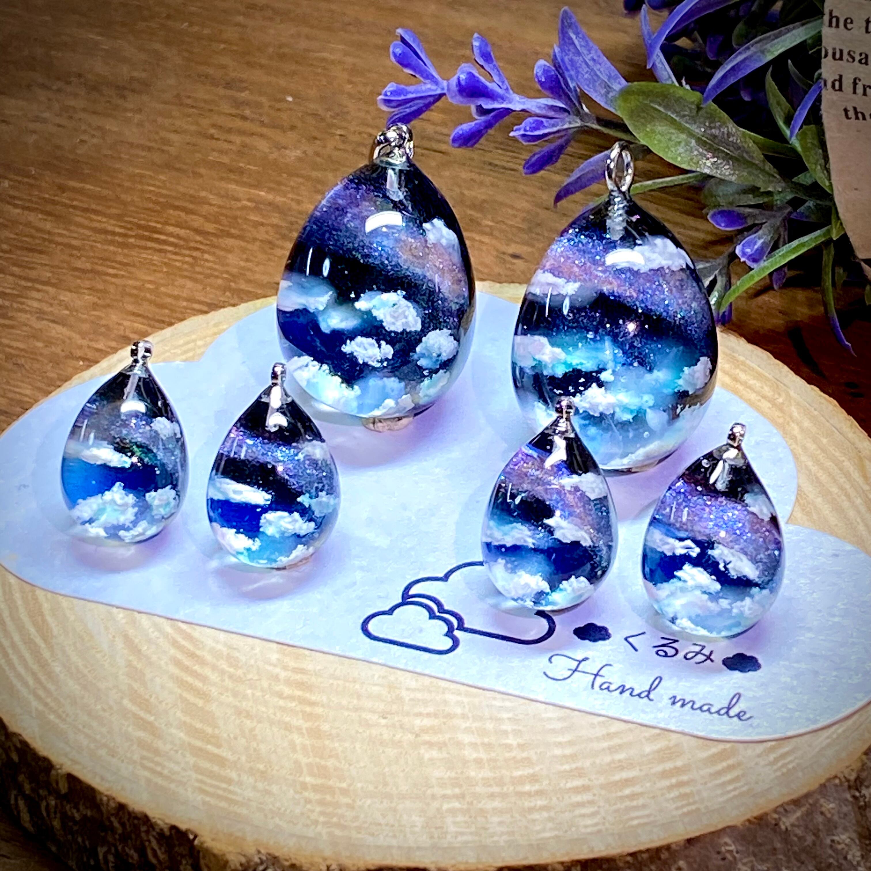 レジンピアス イヤリング 夜空と天の川 たまご型 15×12mm b