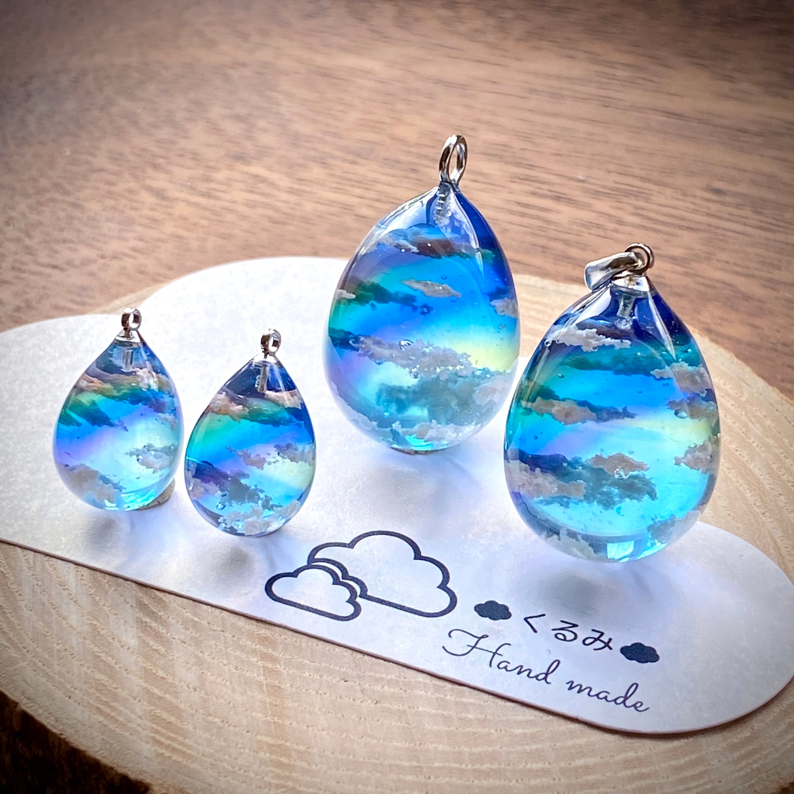 青空にかかる虹をイメージしてたまご型ピアスを作りました。