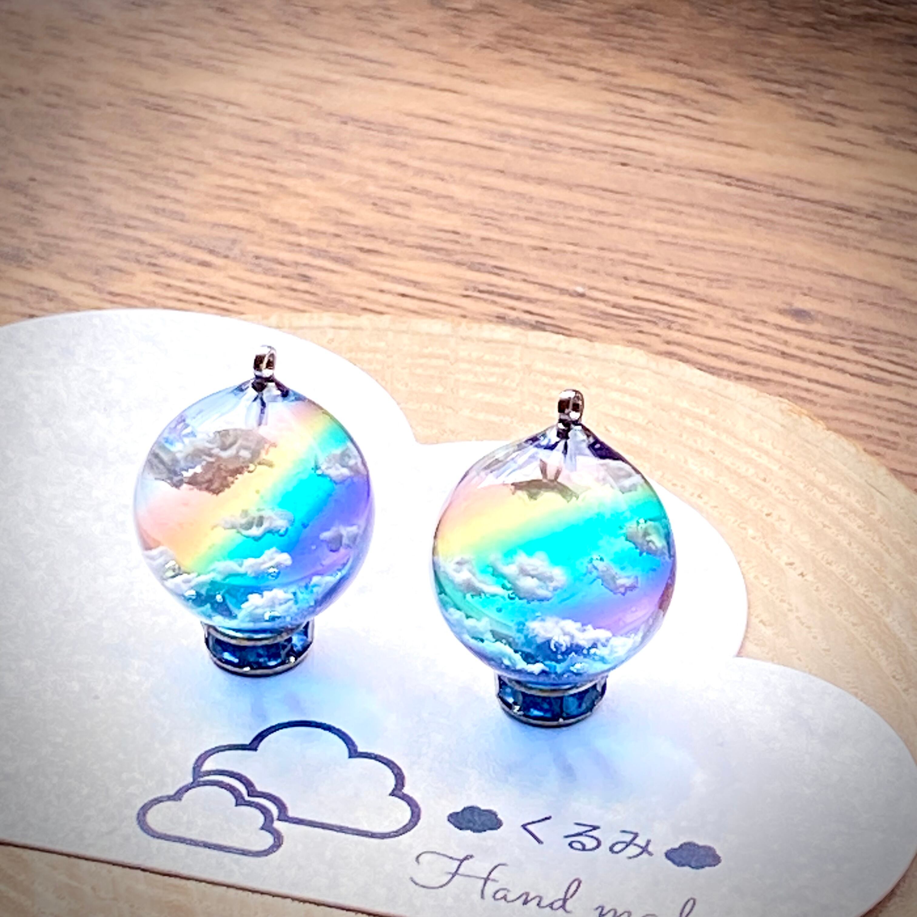 青空にかかる虹をイメージしてまん丸なピアスを作りました。