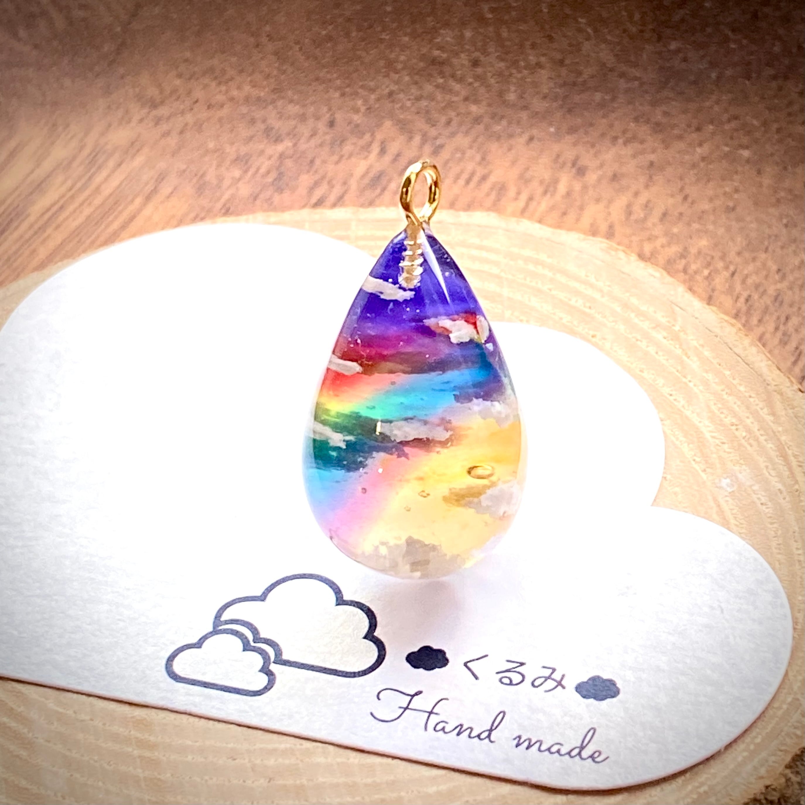夕暮れ空にかかる虹をイメージしてしずく型のペンダントを作りました。