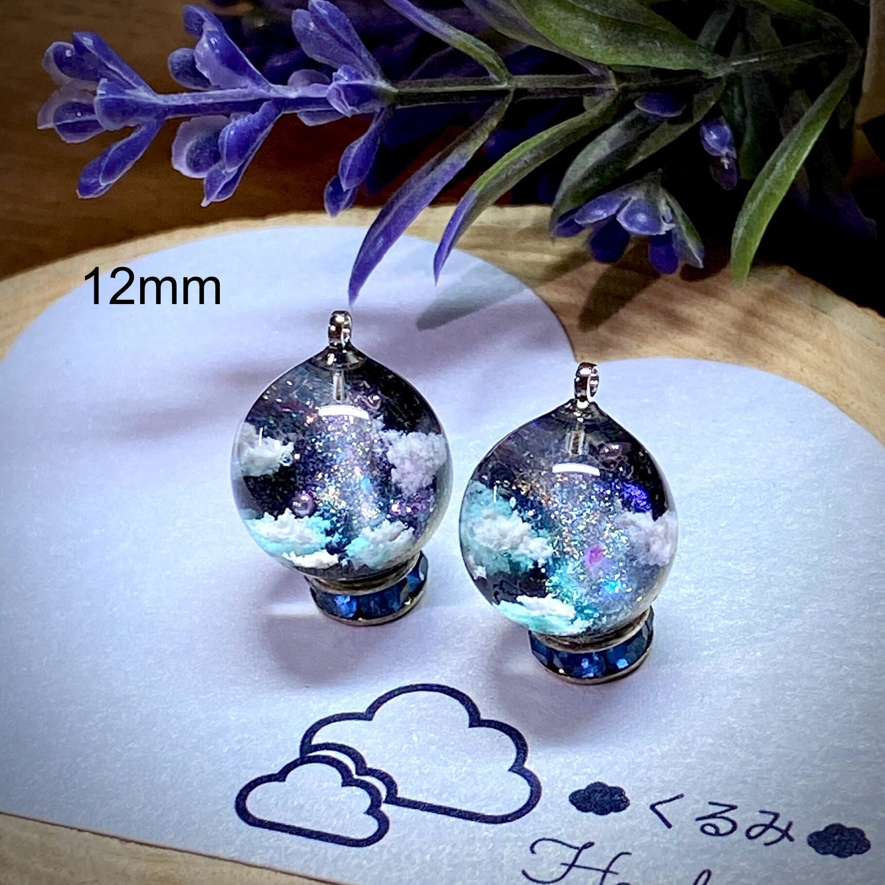 球体で夜空と天の川をイメージしたピアスを作りました。
