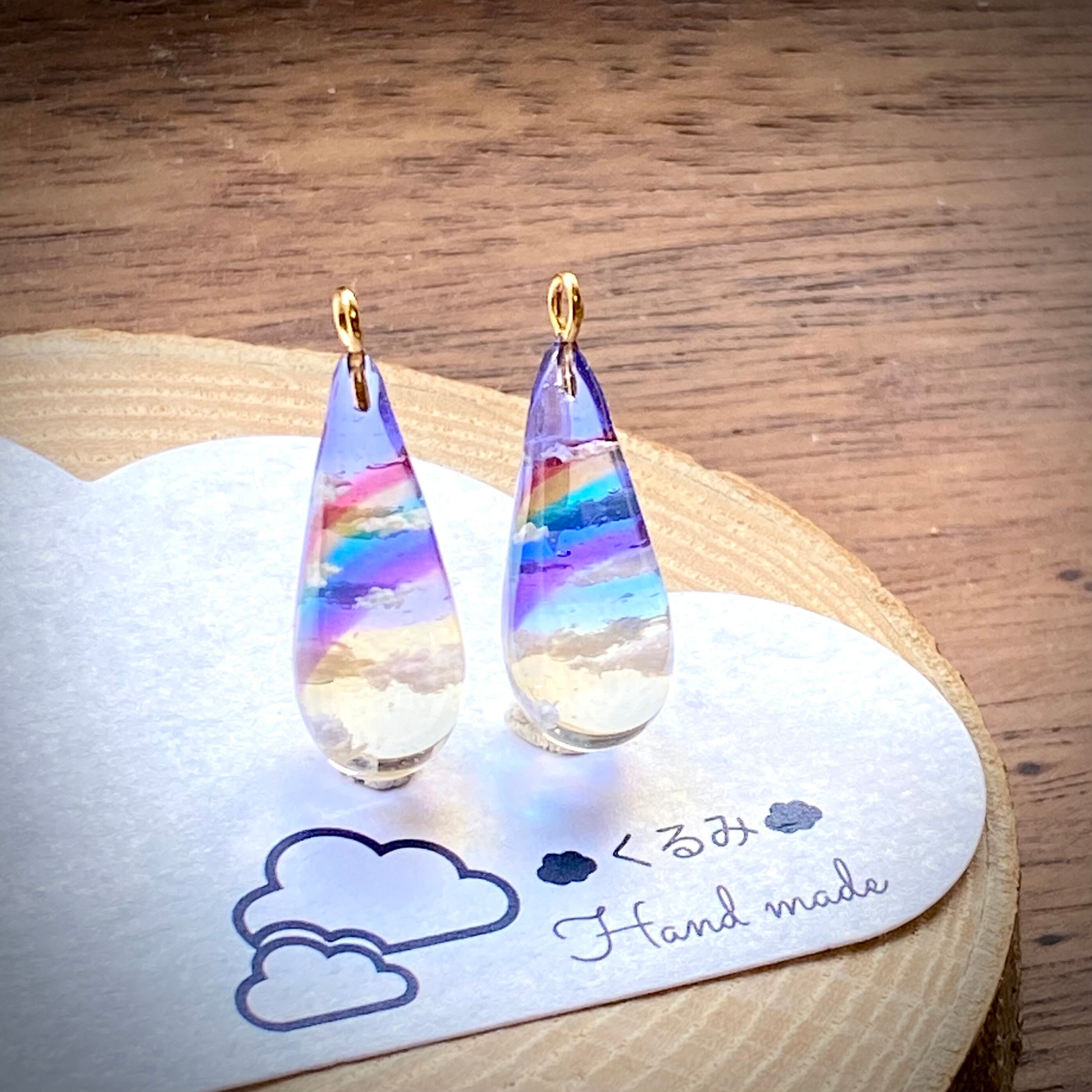 レジンピアス イヤリング 夕暮れ空にかかる虹 涙型 22×10mm