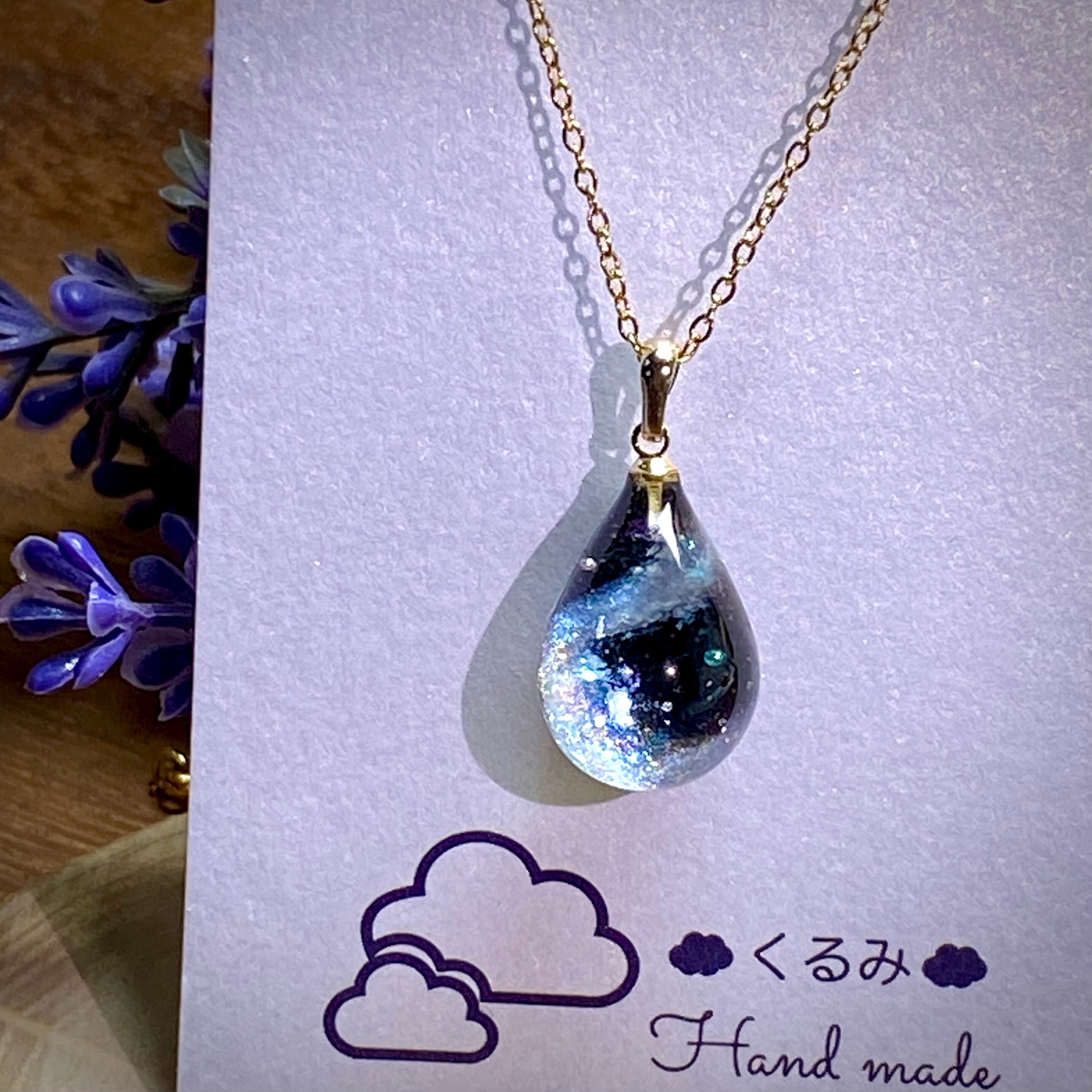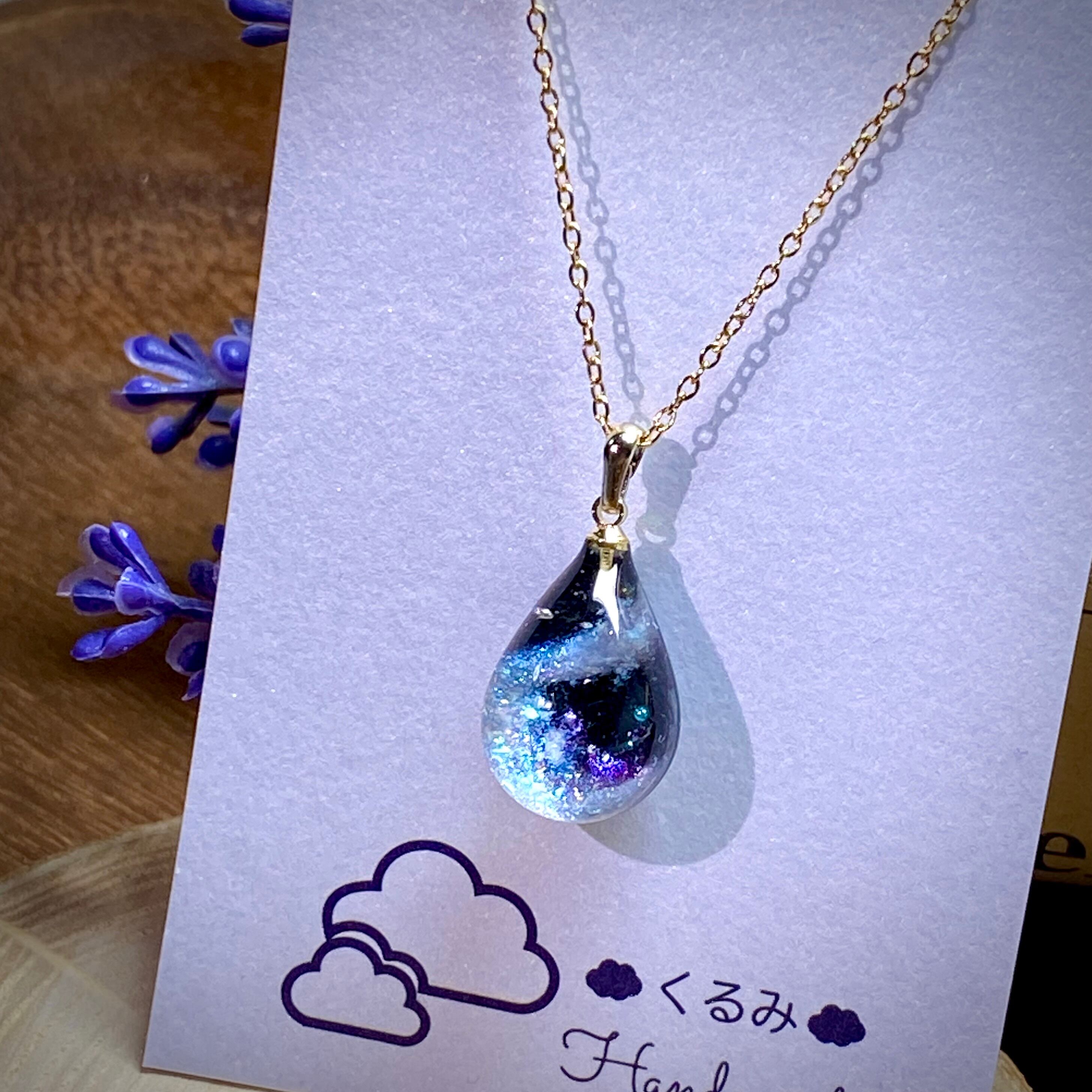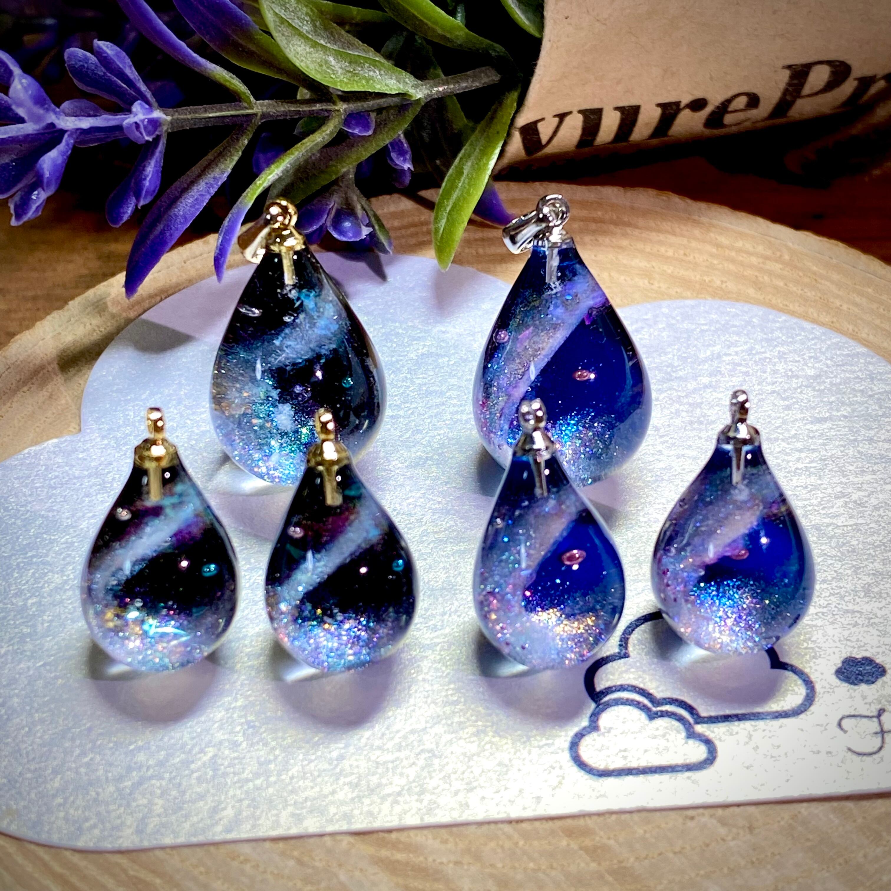 宇宙レジンペンダント 天の川 しずく型 20mm × 12mm グリーン ゴールド