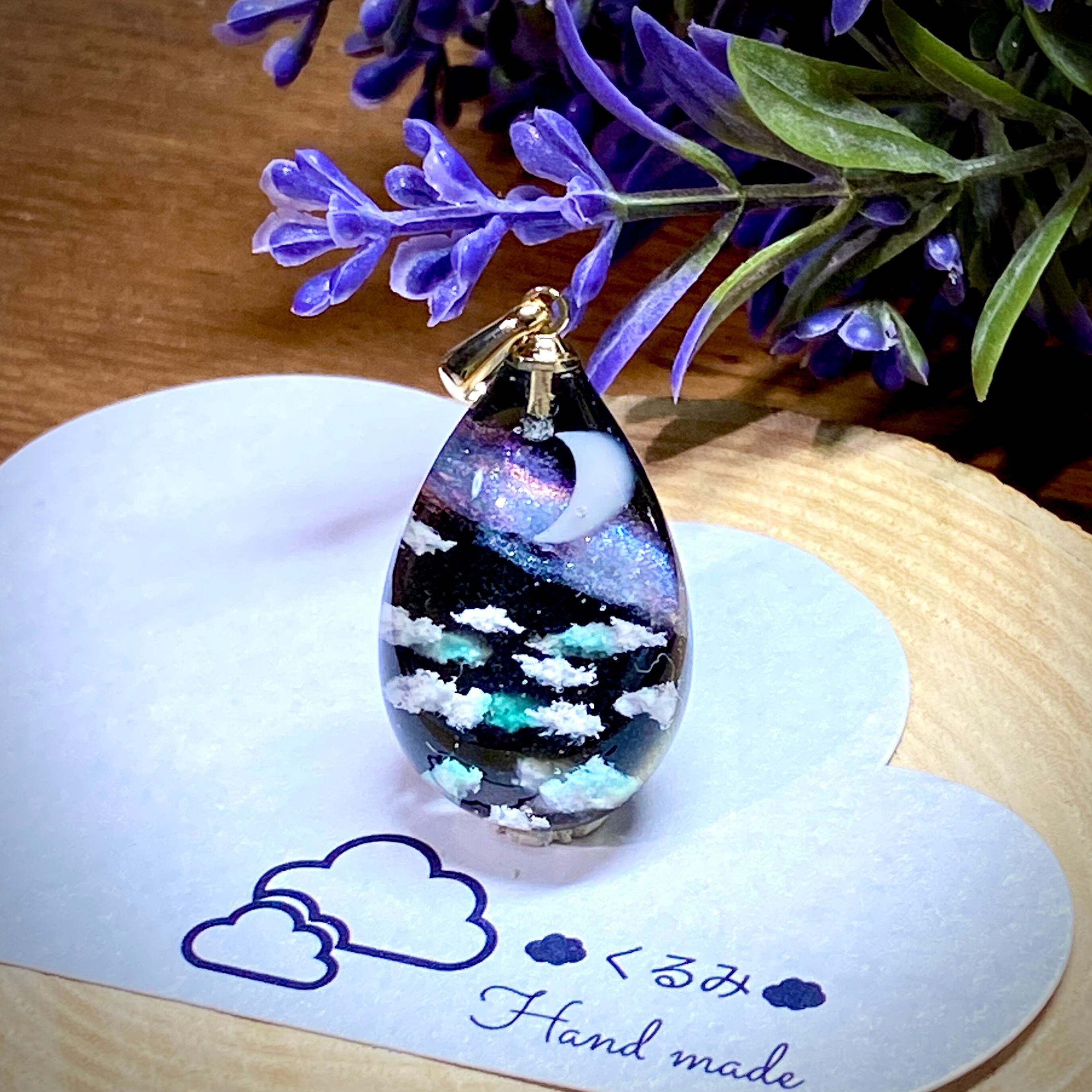 しずく薄型で三日月 夜空と天の川のペンダントを作りました。