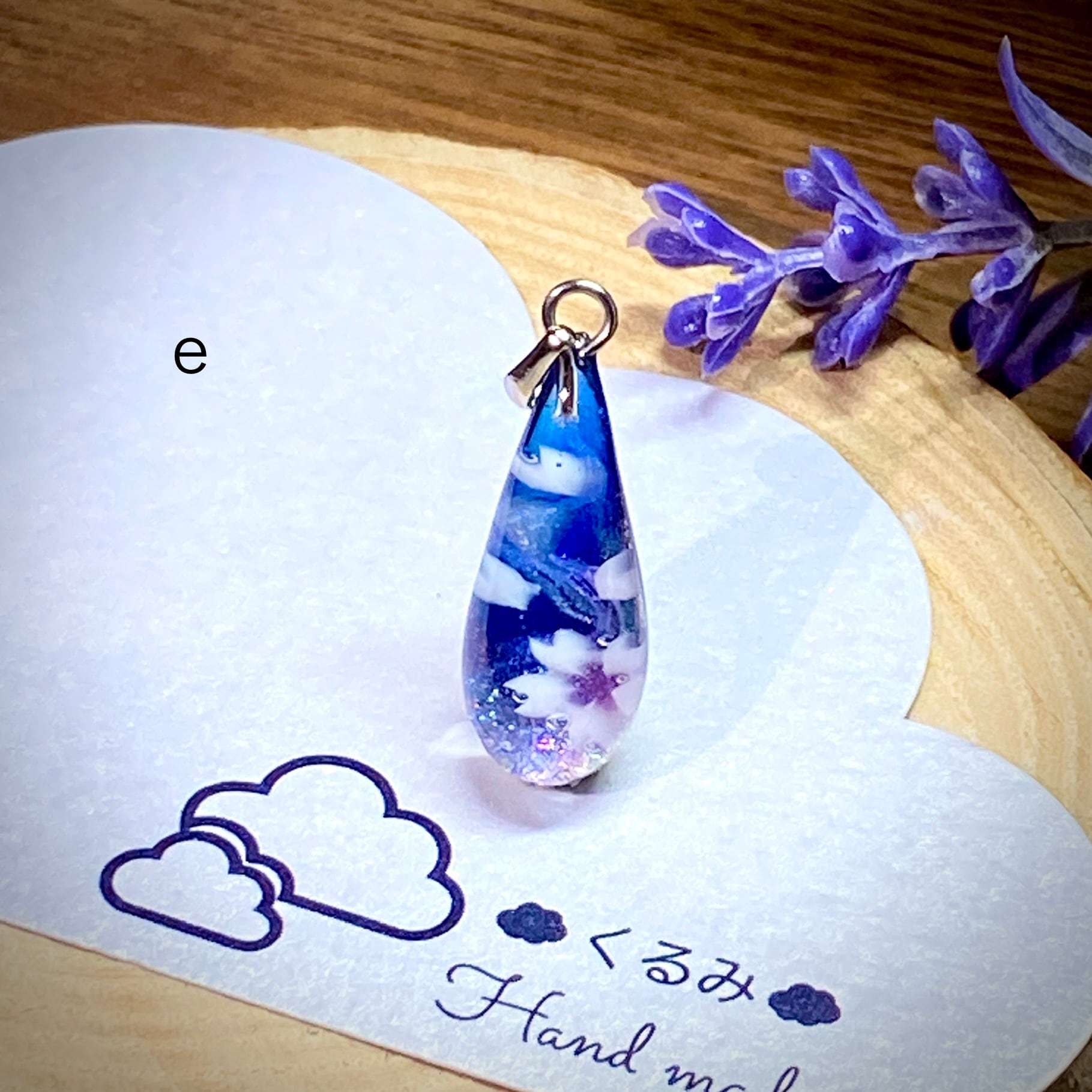 涙型で桜のペンダントを作りました。