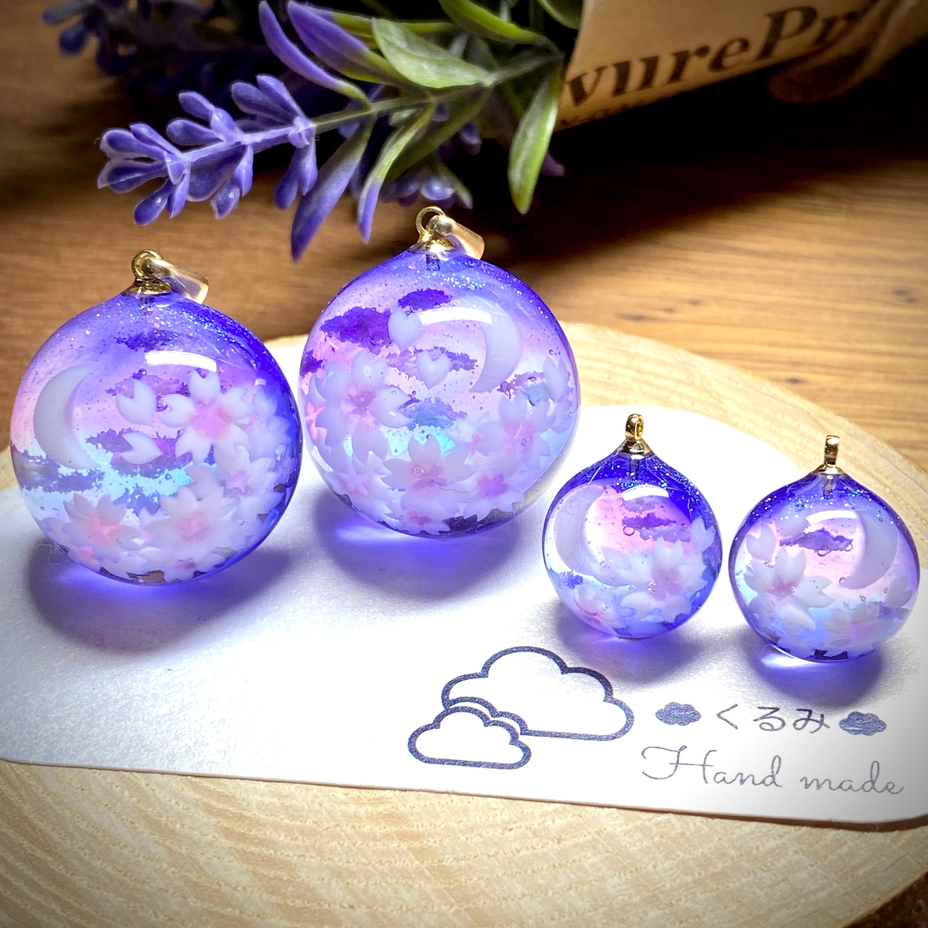 半球の雲レジン 三日月と夜桜