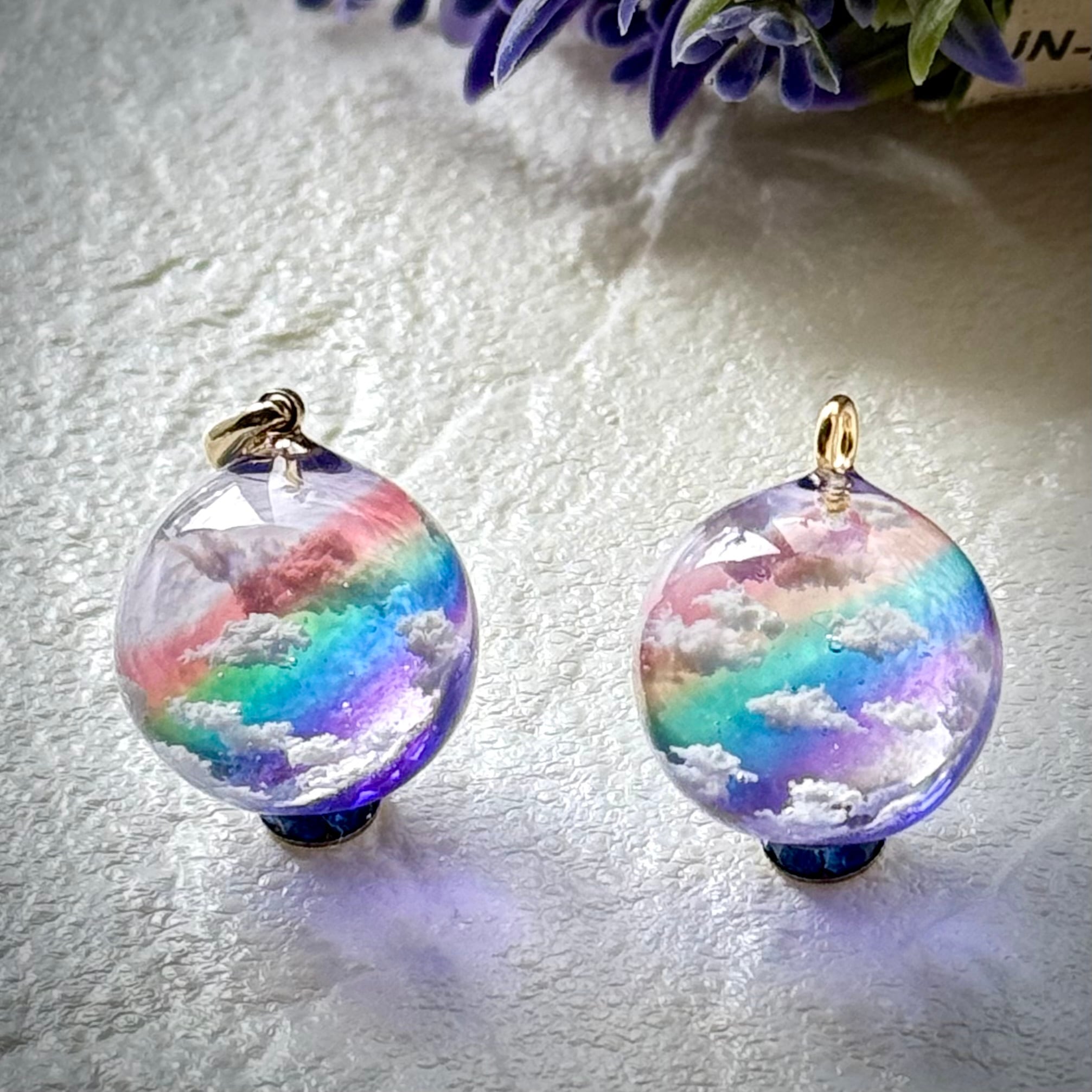空&雲ペンダント まん丸 夕暮れ空にかかる虹 20mm バチカン付き