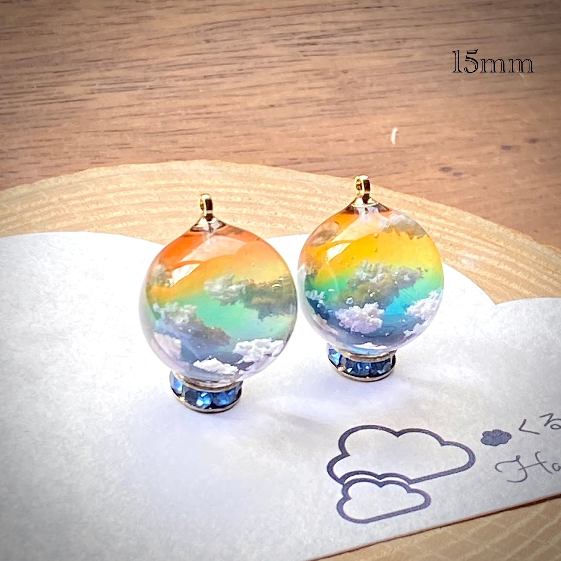 虹色の空をイメージしてまん丸ピアスを作りました。