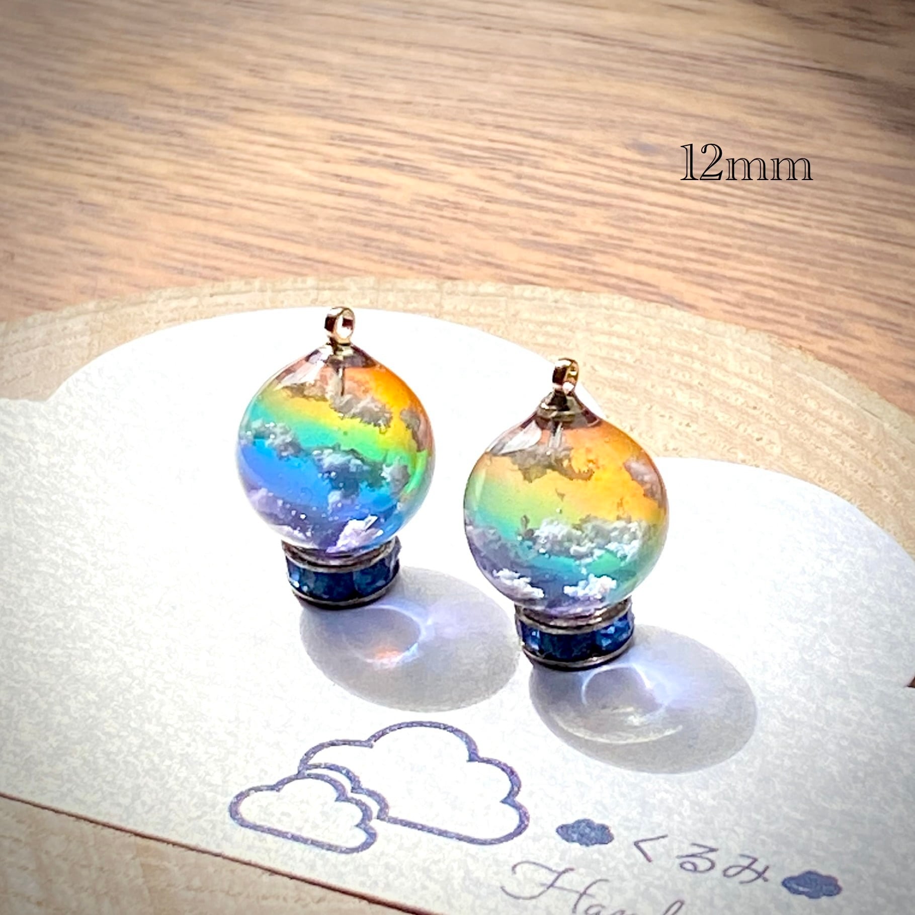 レジンピアス イヤリング 虹色の空 まん丸 12mm