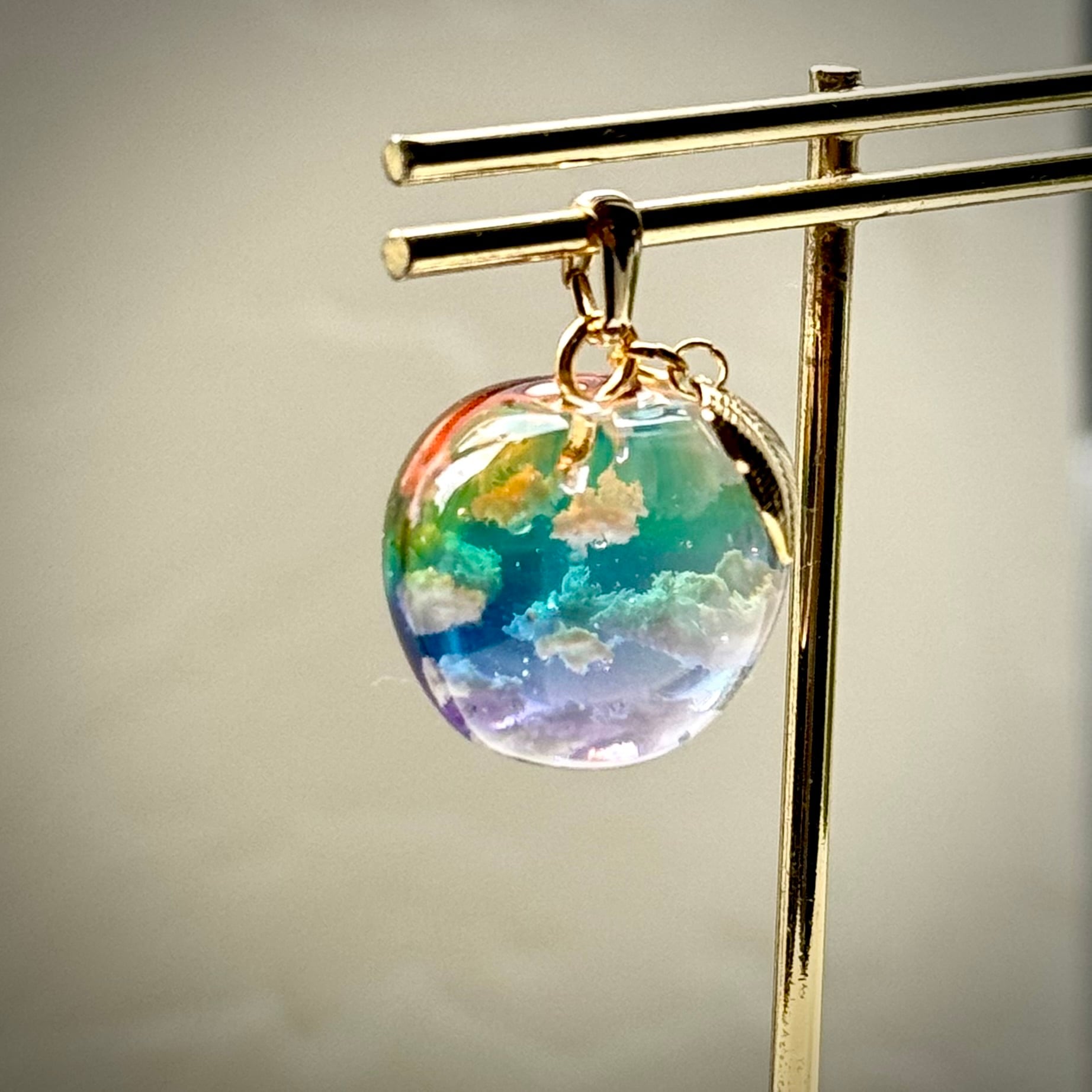 虹色の空をイメージしてりんご型ペンダントを作りました。