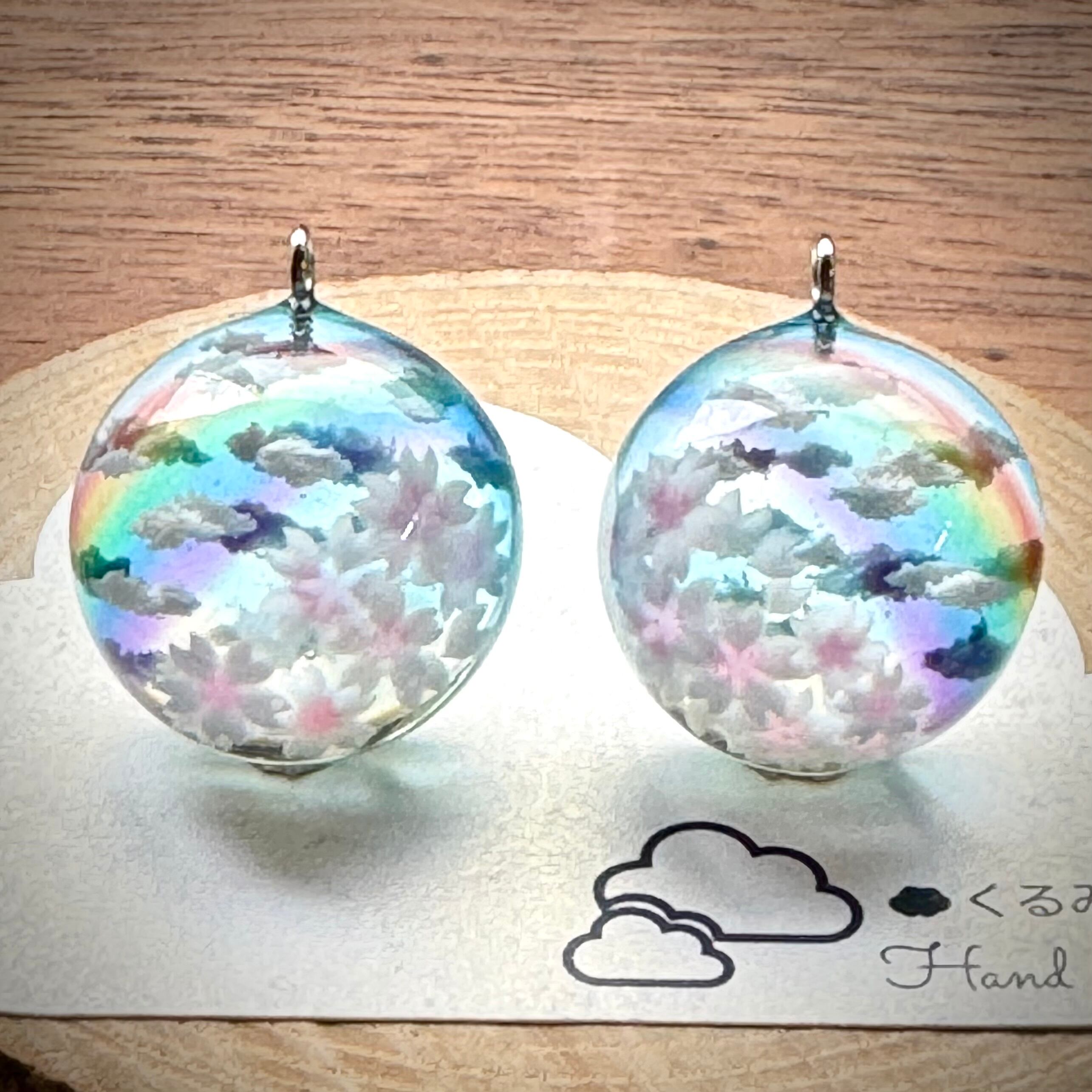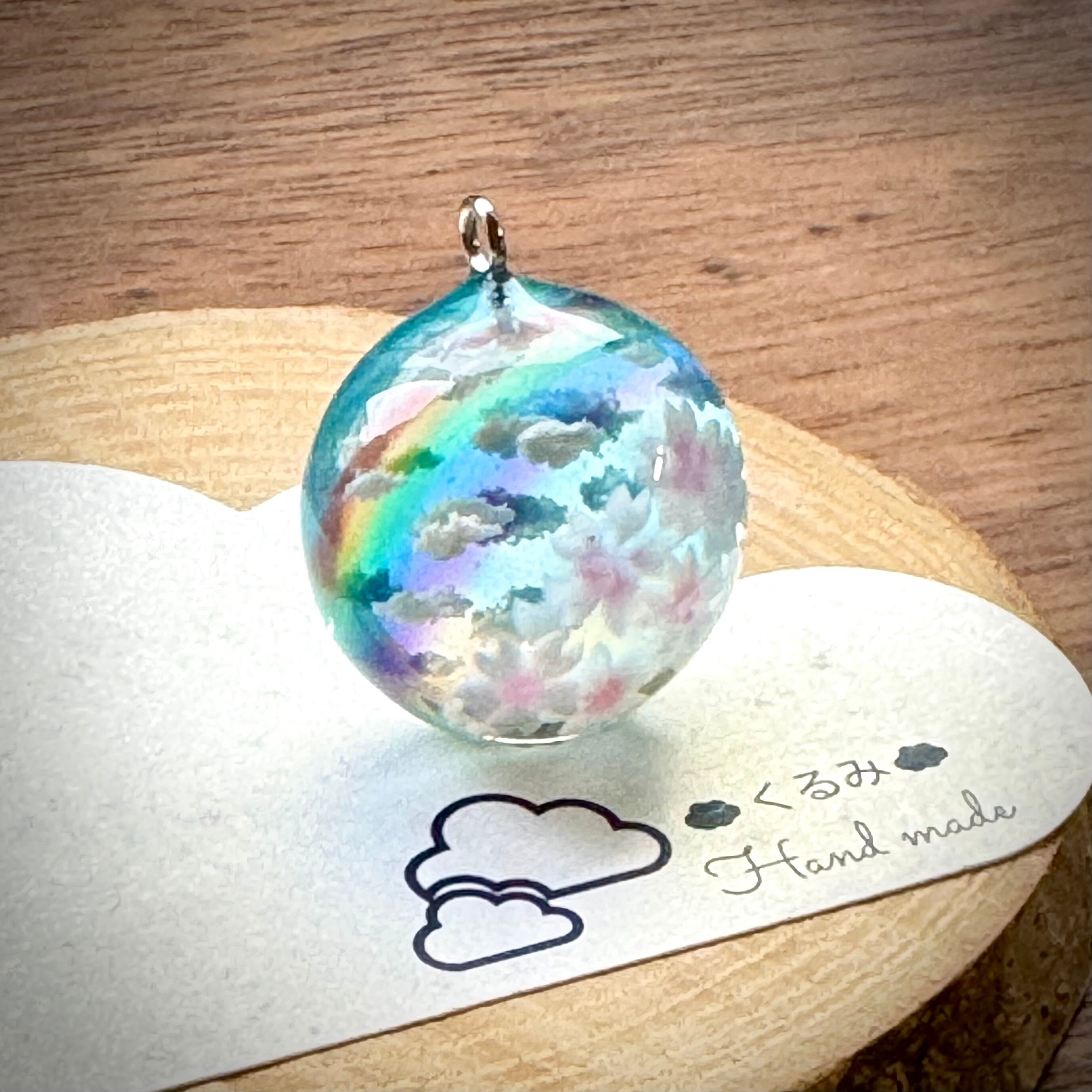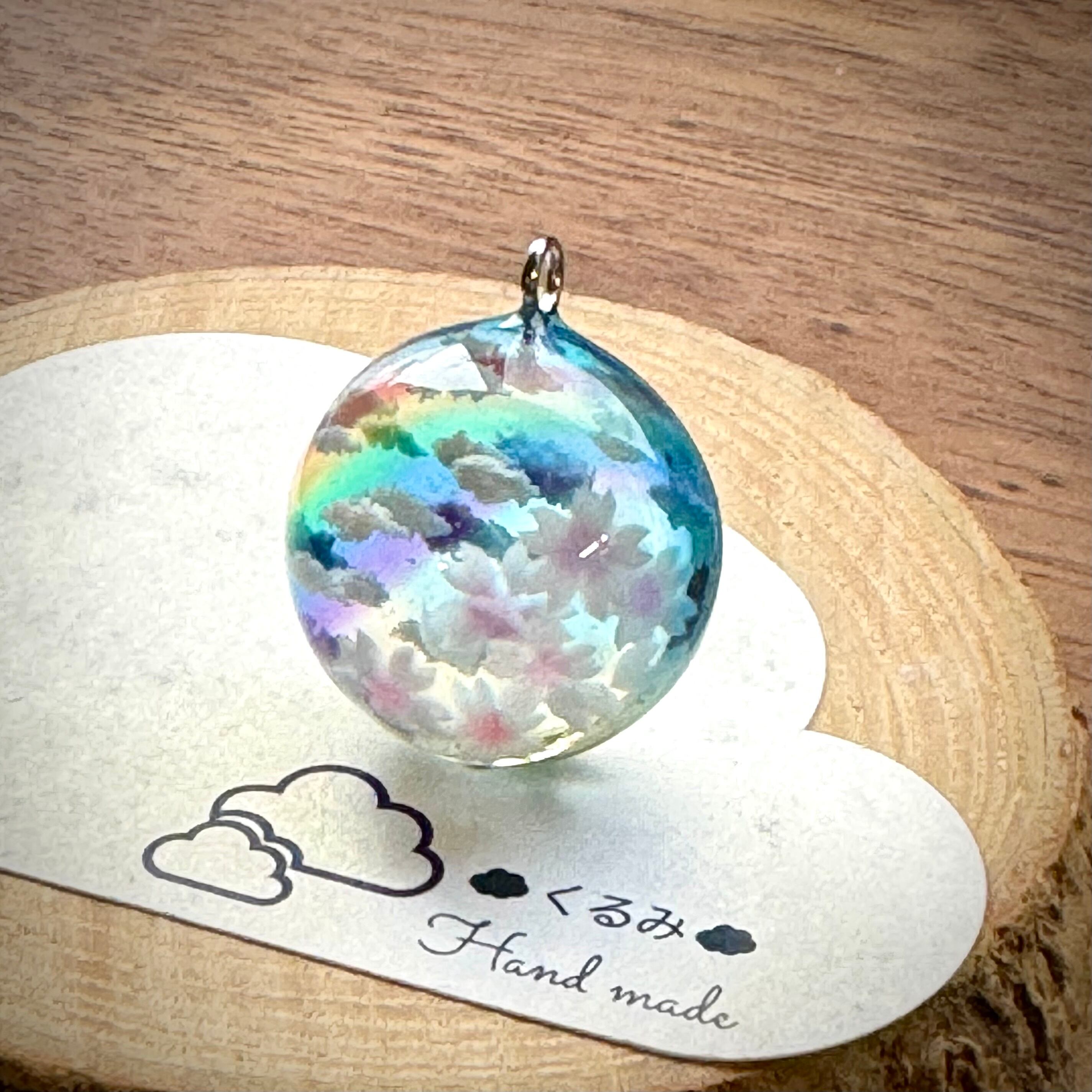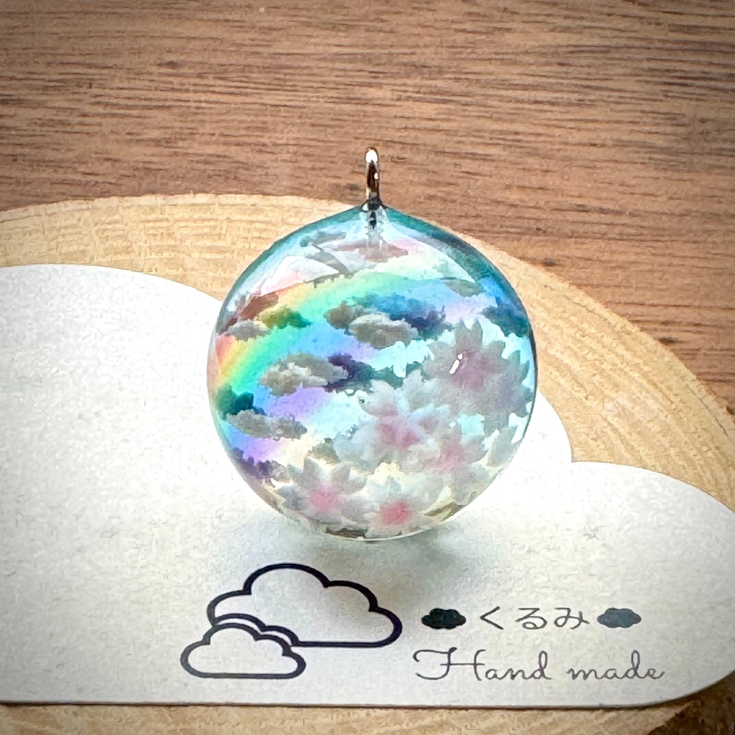 満開の桜から眺める青空にかかる虹をイメージして半球のペンダントを作りました。