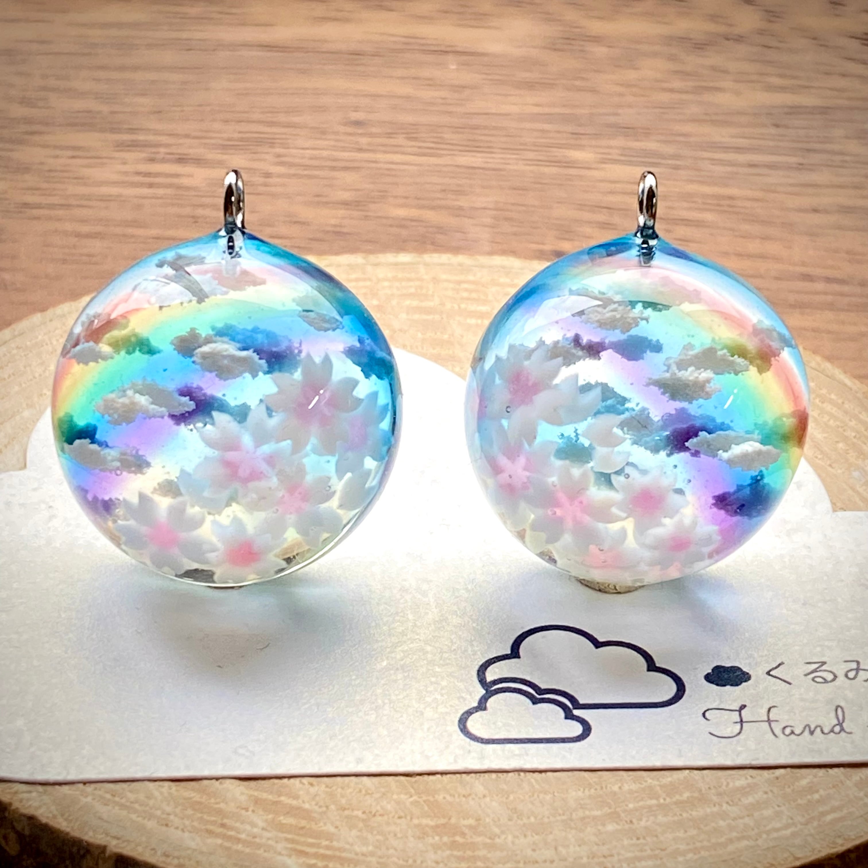 半球の雲レジン 桜と青空にかかる虹 大きめ26mm