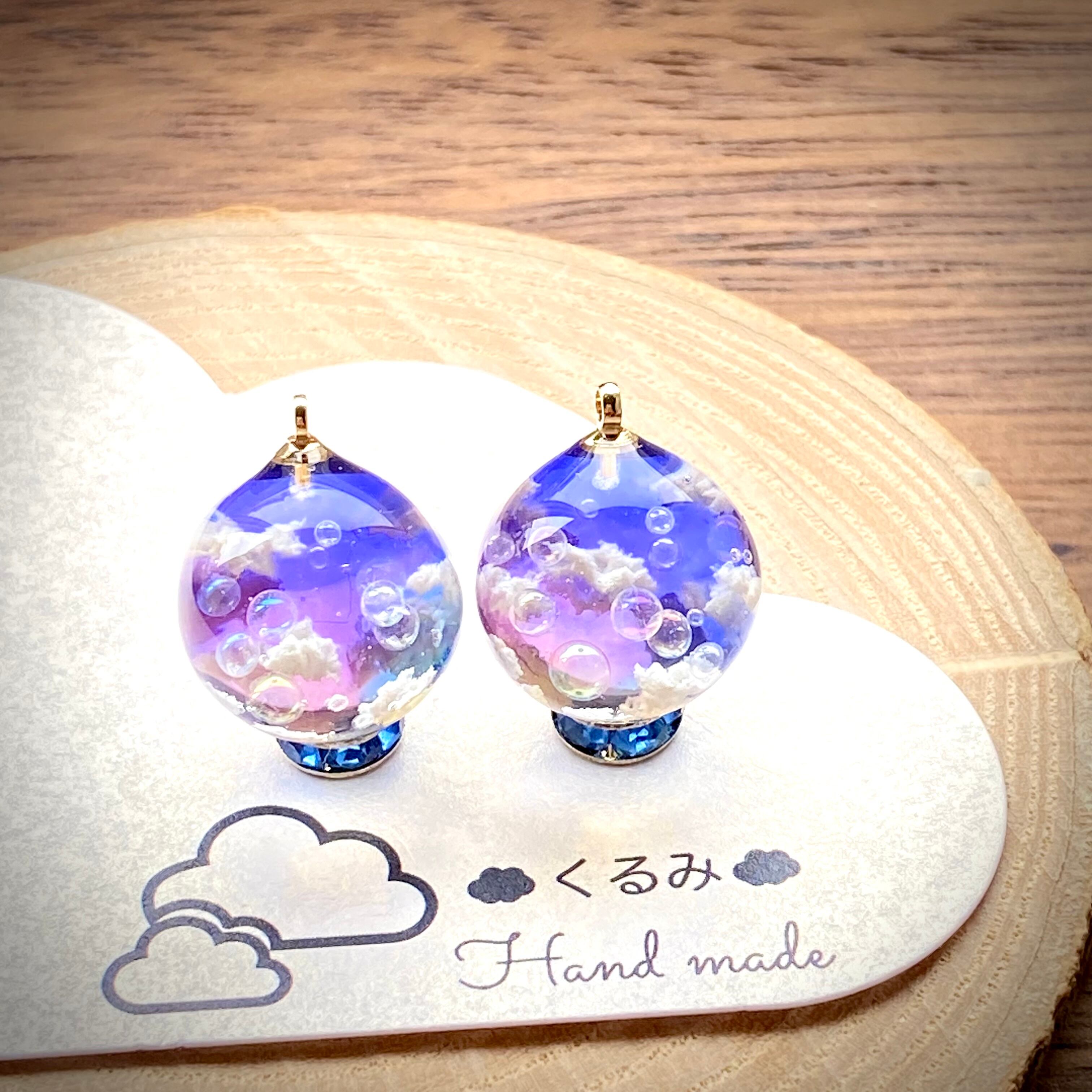 レジンピアス イヤリング 夕暮れ空とシャボン玉 まん丸 14mm f