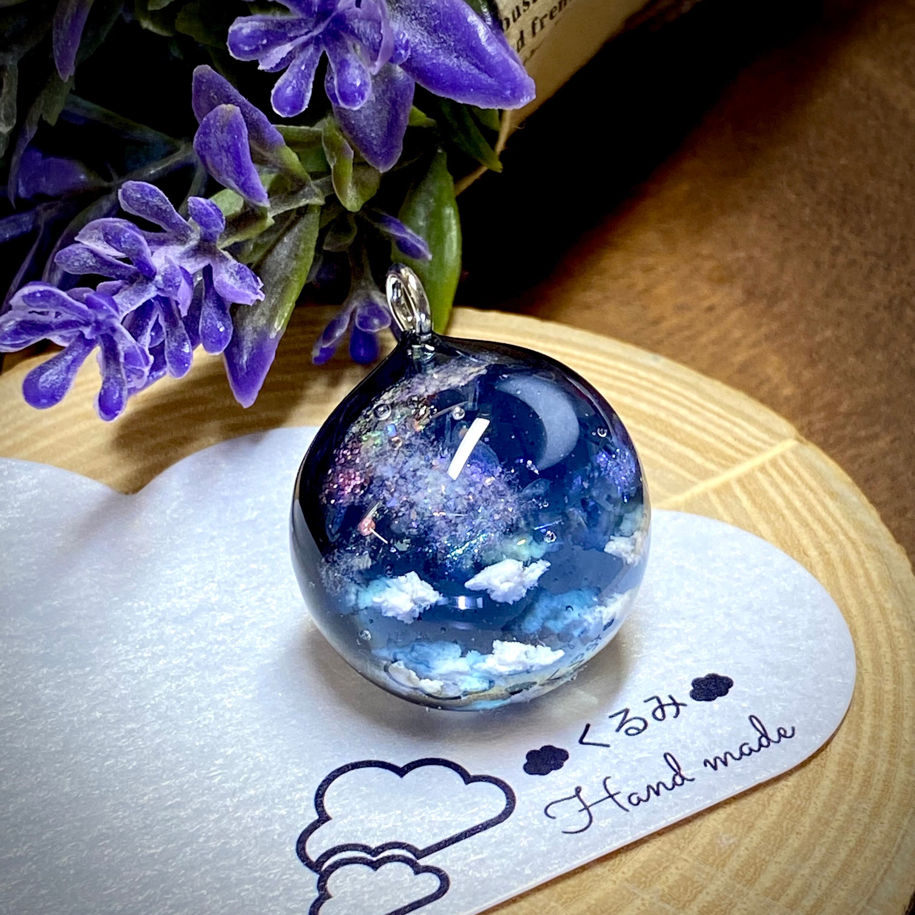 • 半球の雲レジン 夜空 三日月と天の川  大きめ K