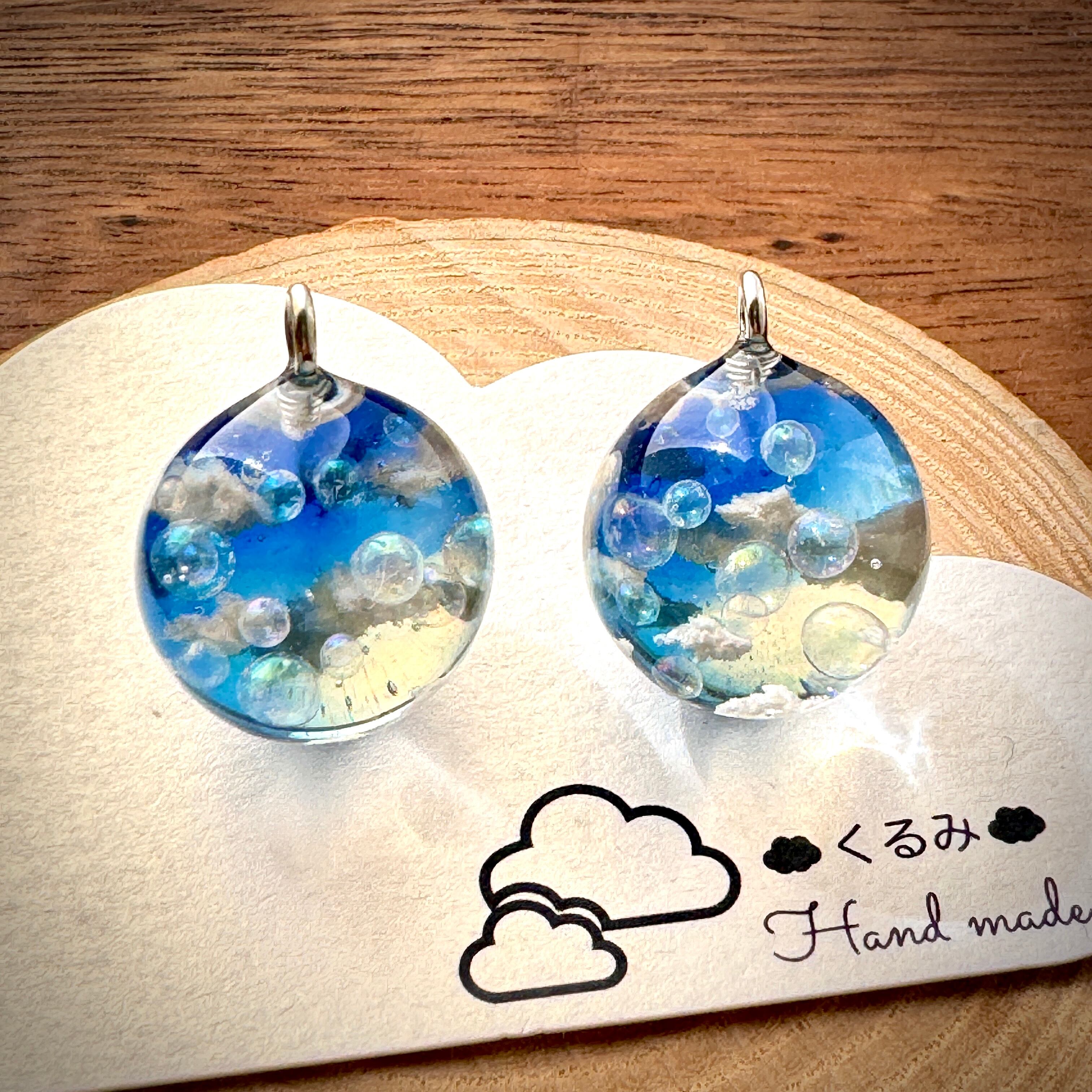 青空に浮かぶシャボン玉をイメージしてまん丸なペンダントを作りました