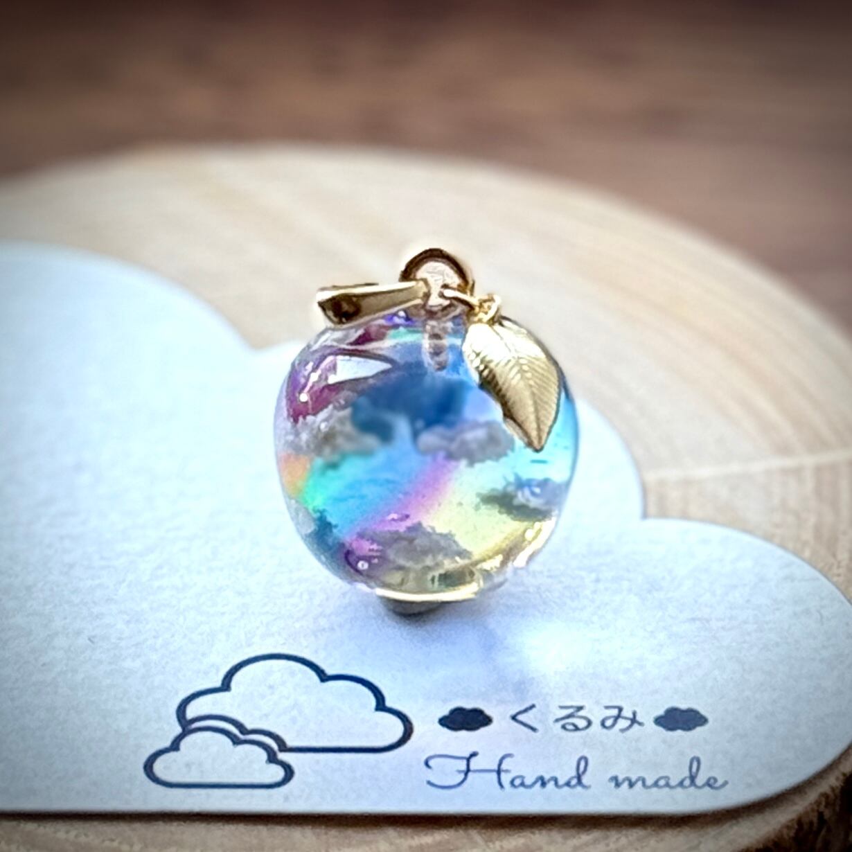 りんごの形の夕空にかかる虹のペンダントを作りました。