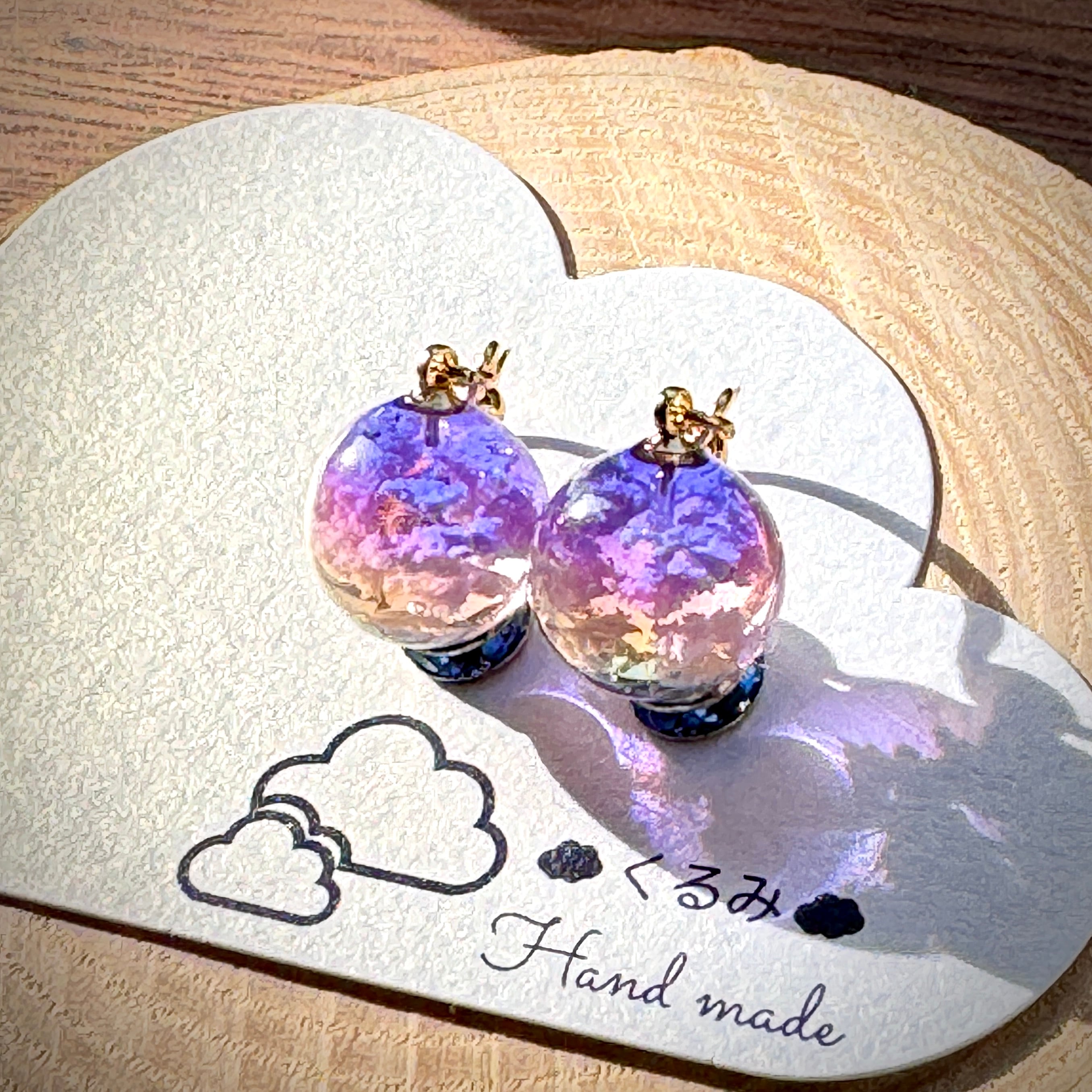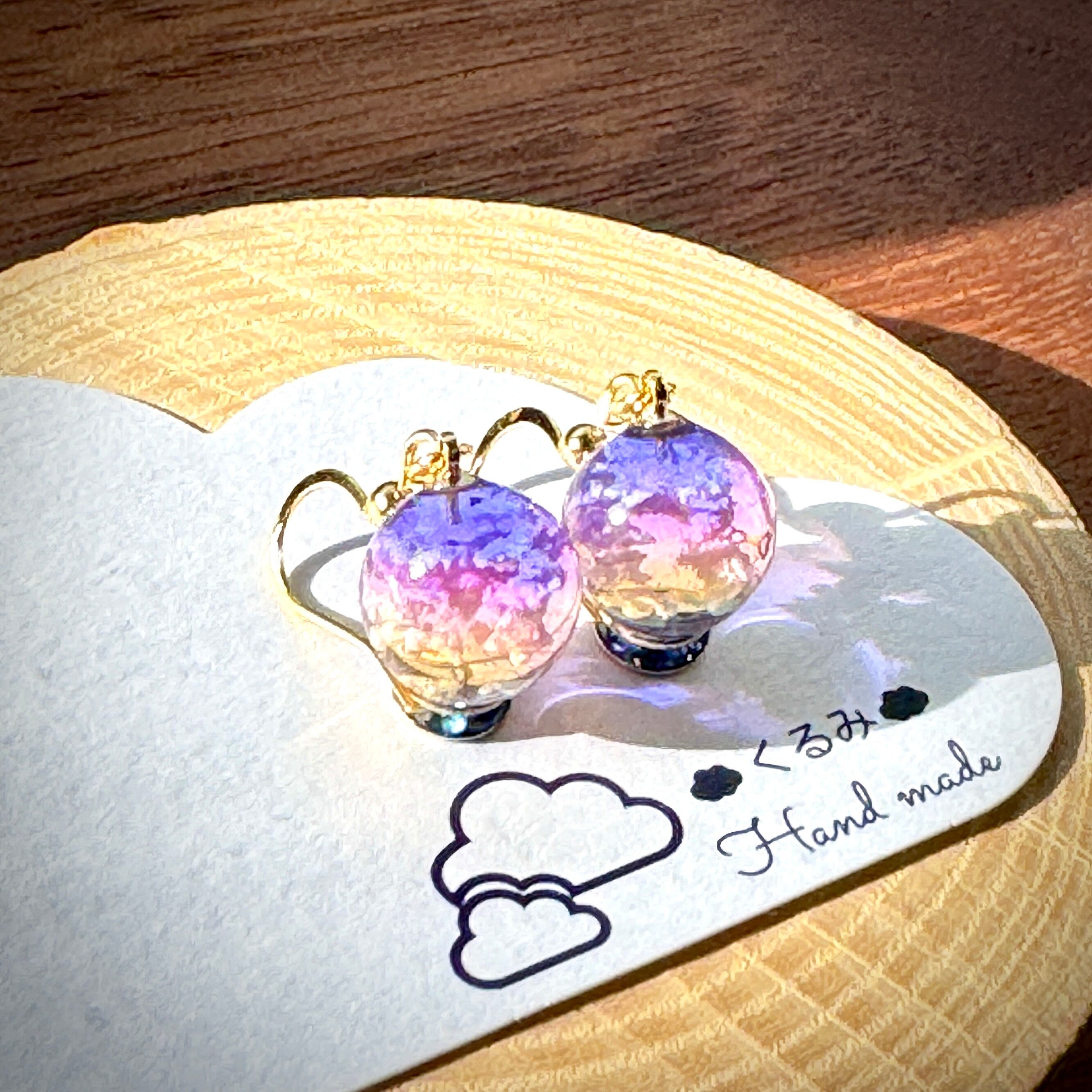 夕暮れ空をイメージしてまん丸なピアスを作りました。