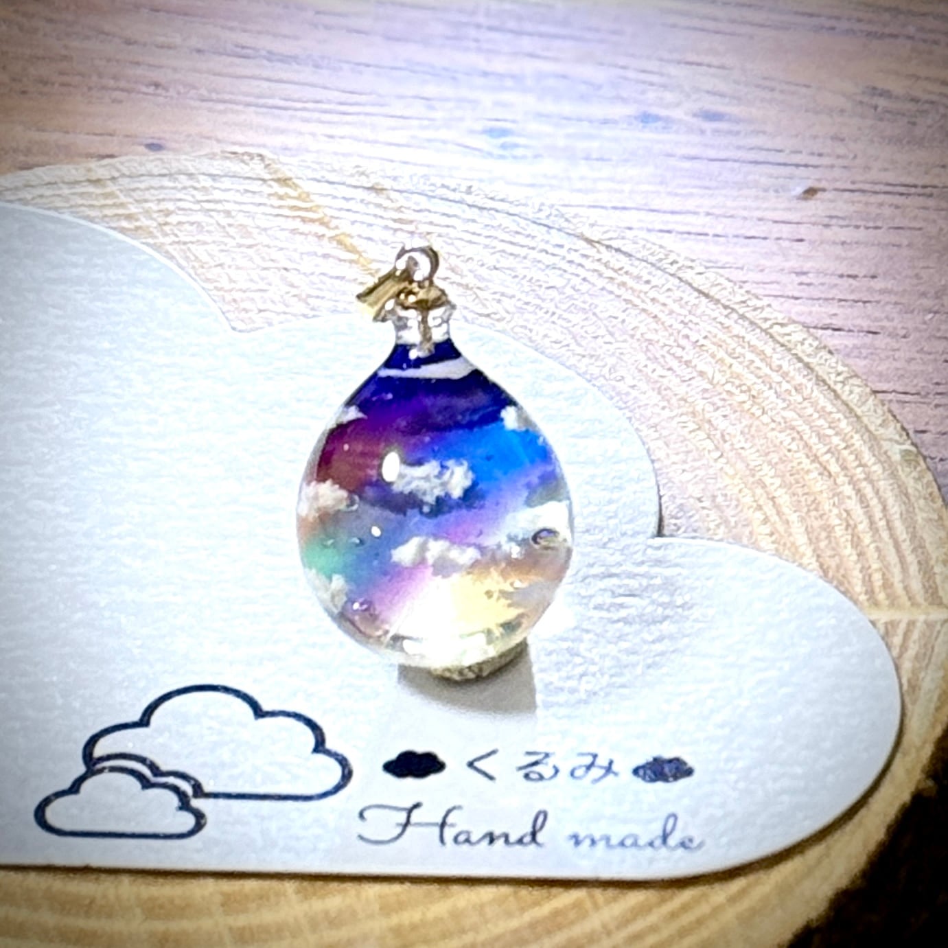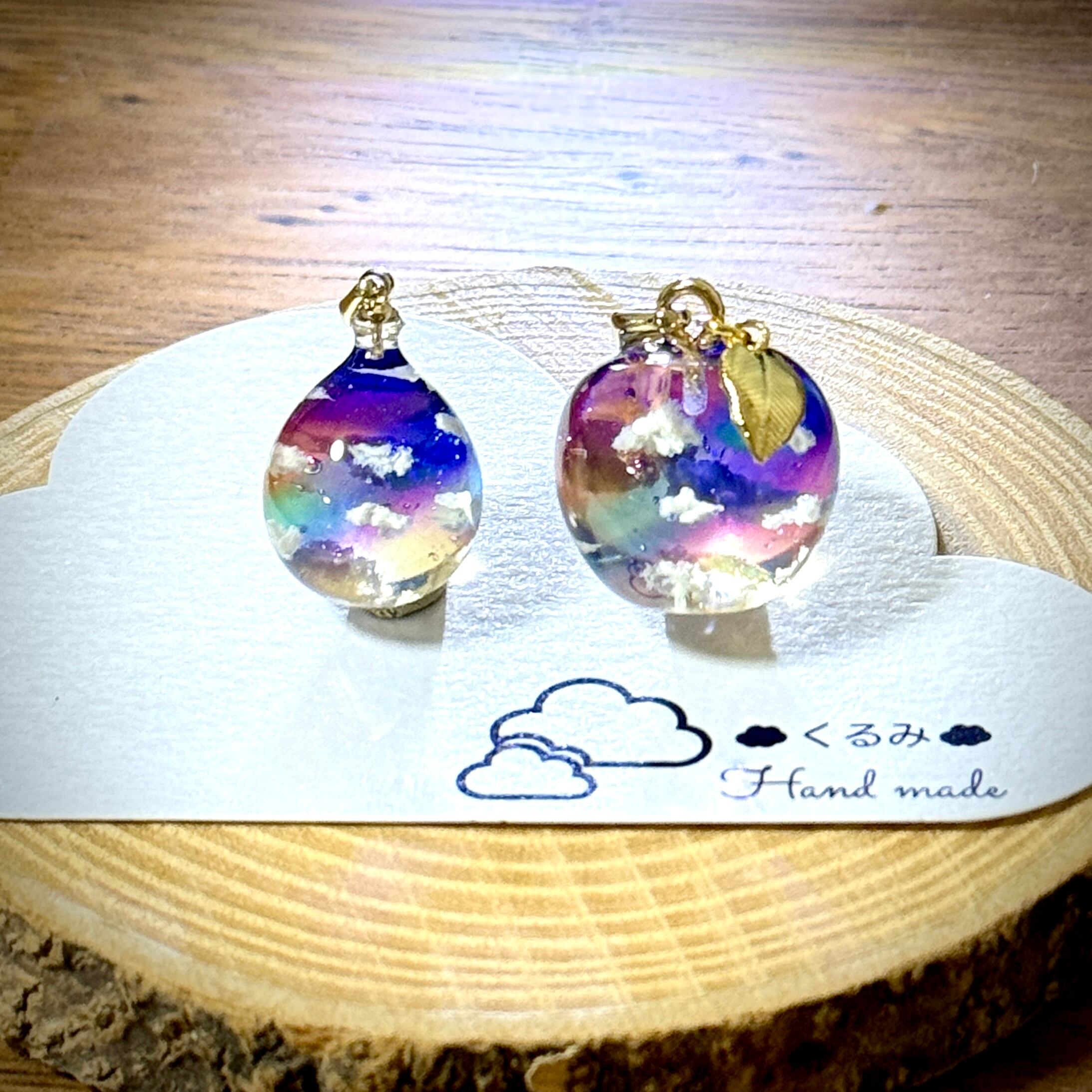 風船の形の夕空にかかる虹のペンダントを作りました。