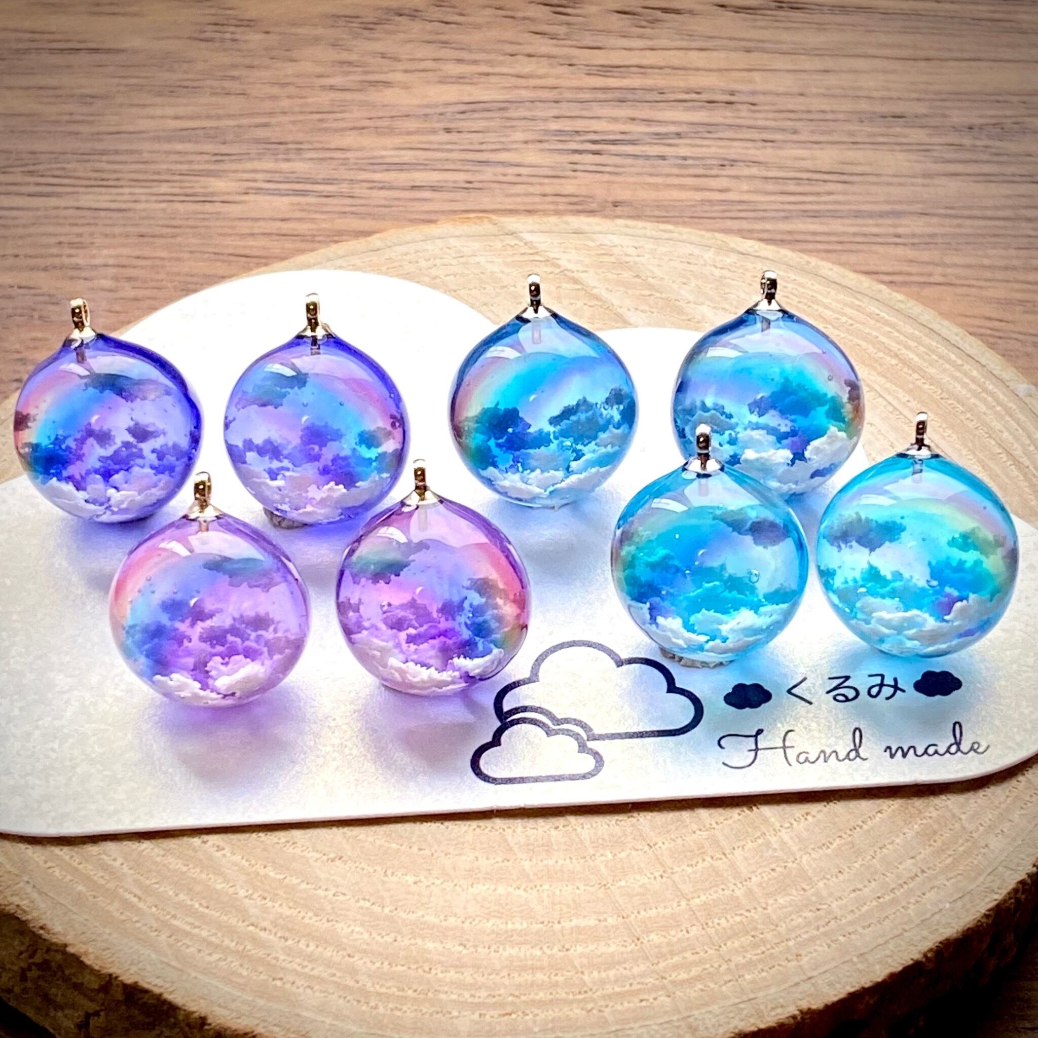 • レジンピアス イヤリング 青空にかかる虹 半球 14mm b