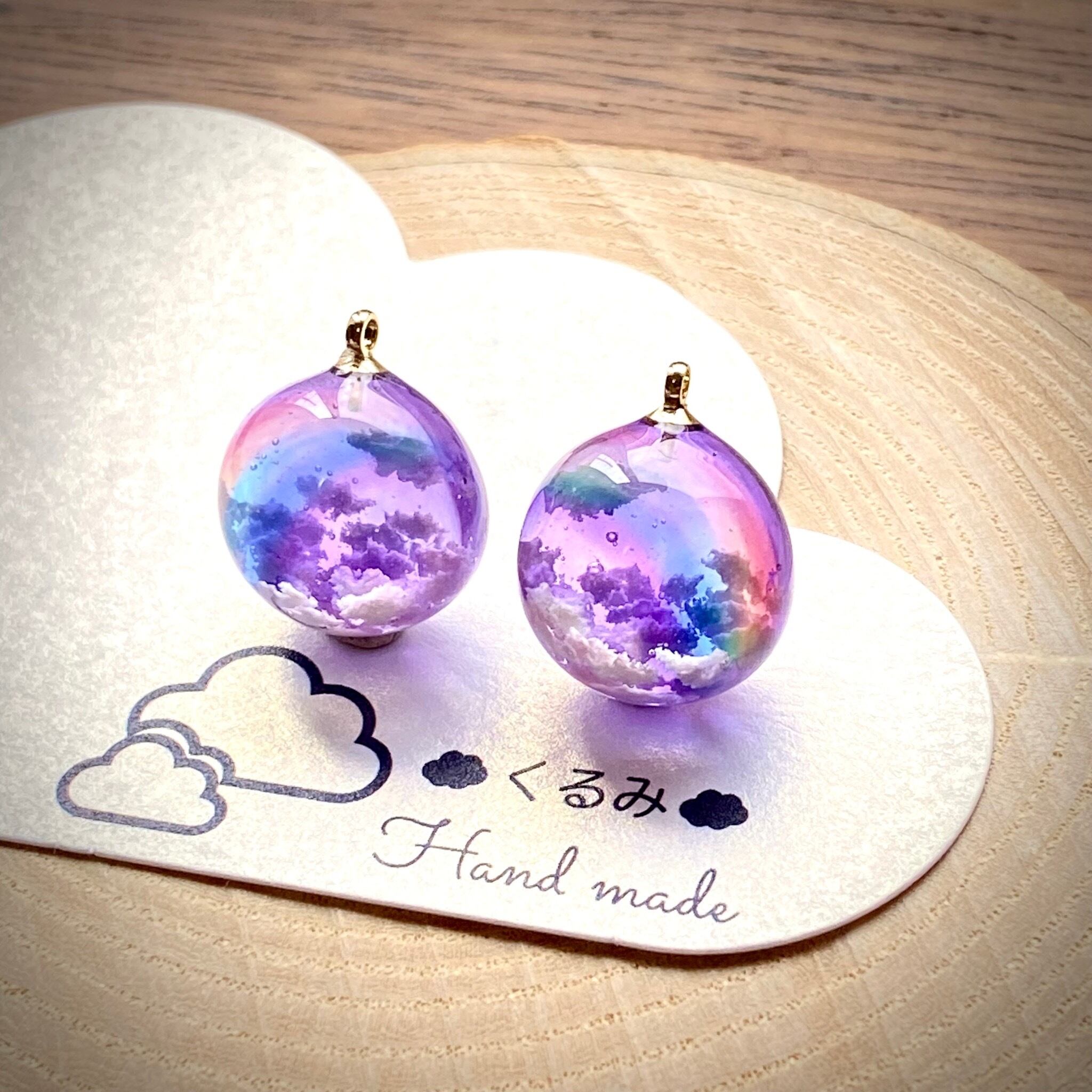 虹の空をイメージして半球のピアスを作りました。