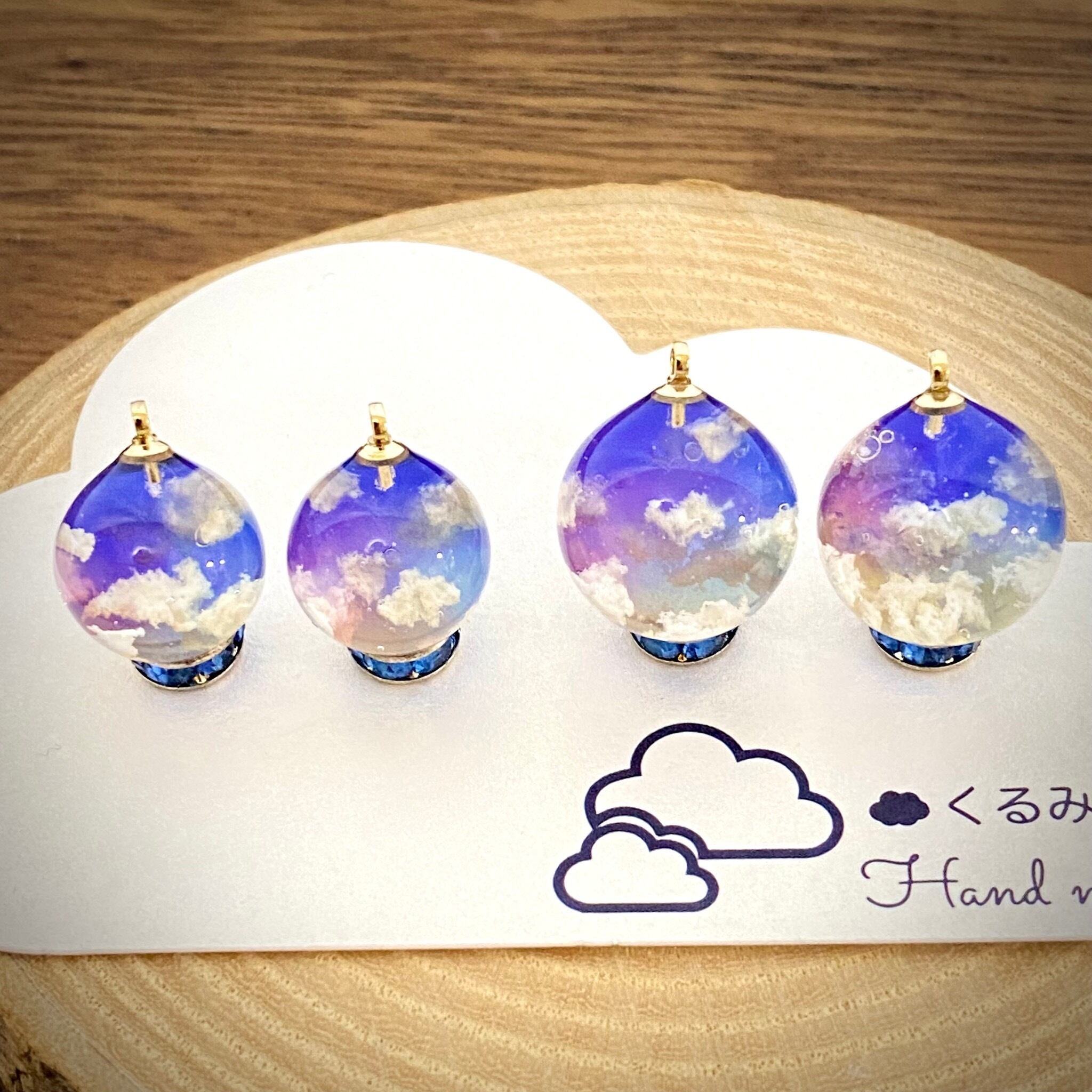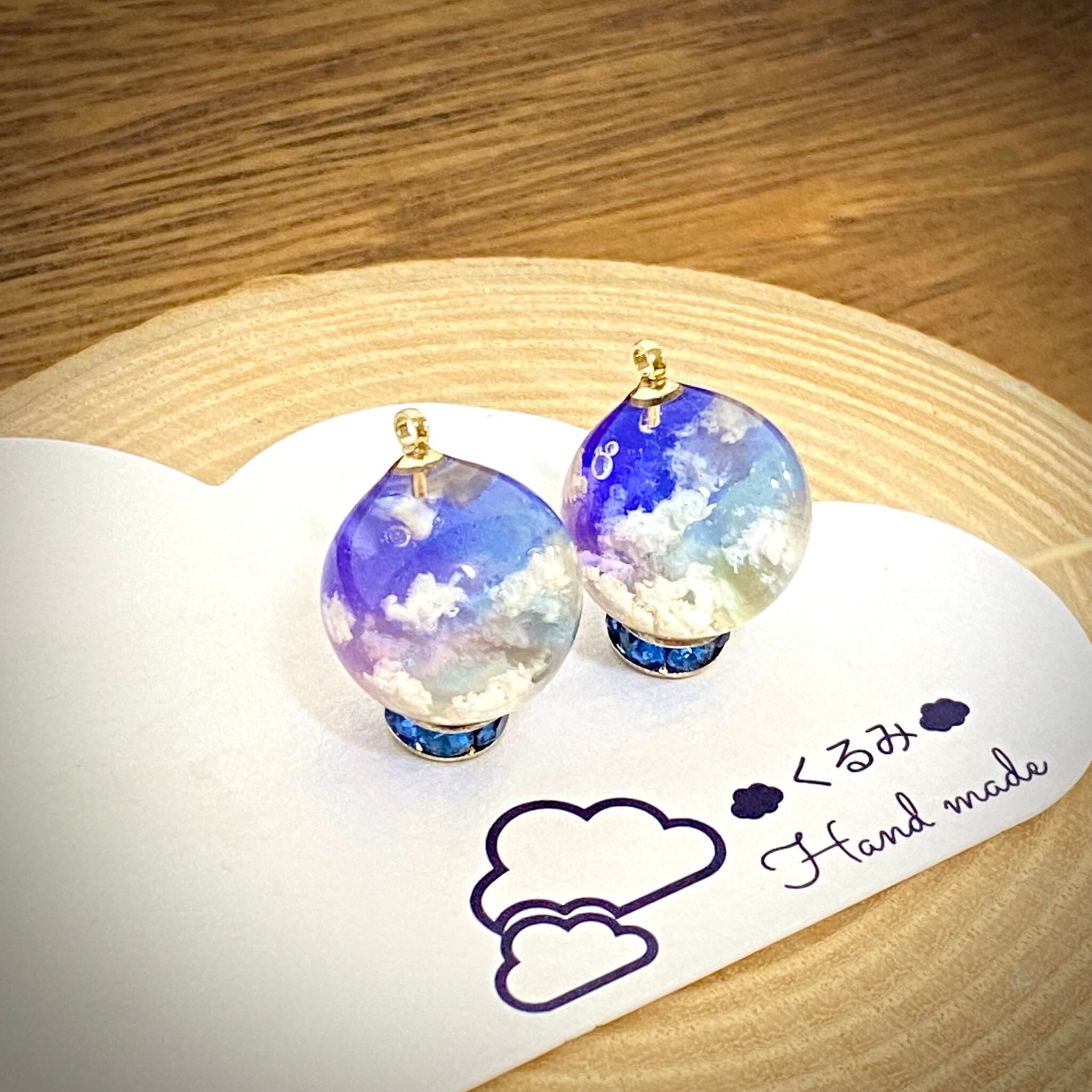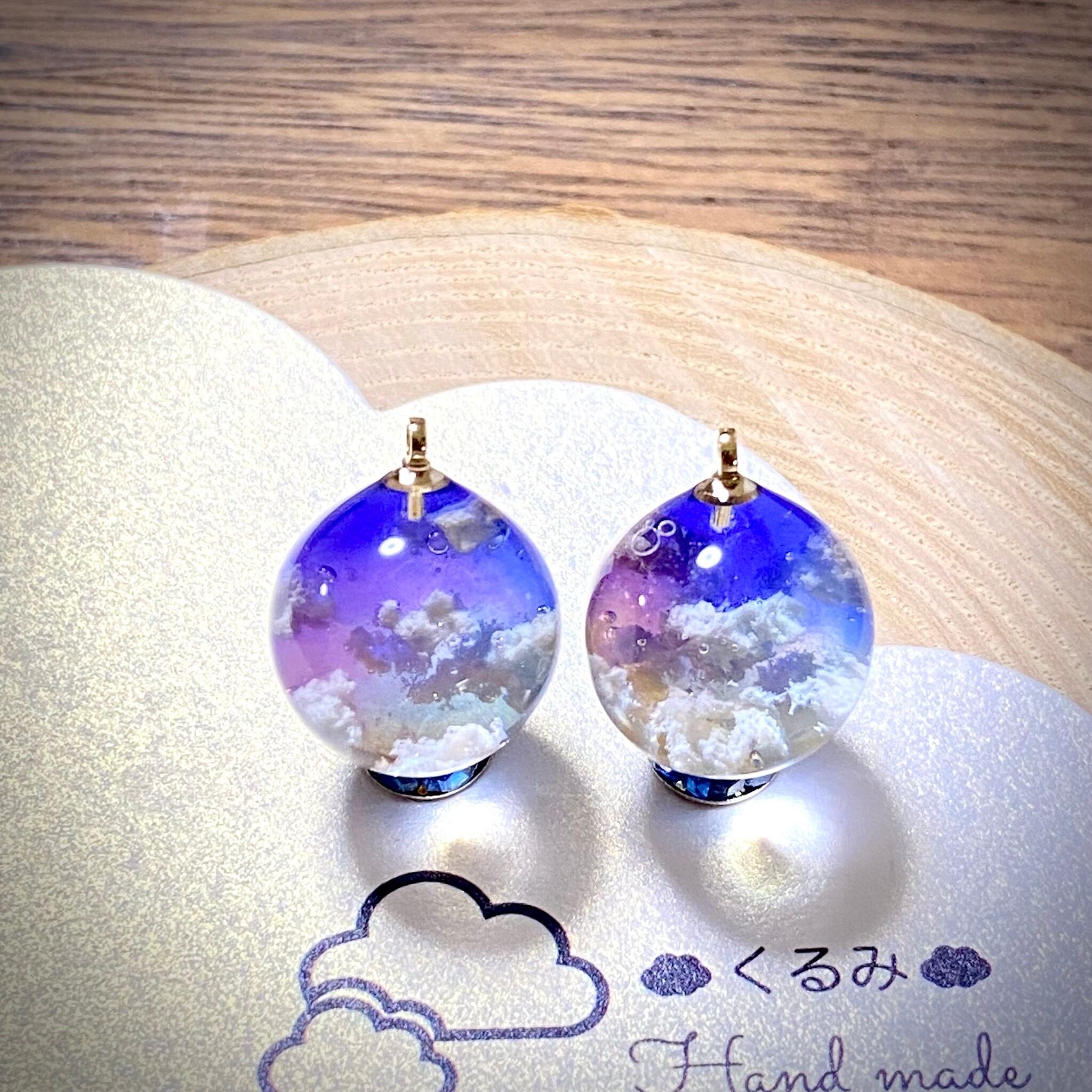 夕暮れ空をイメージしてまん丸ピアスを作りました。