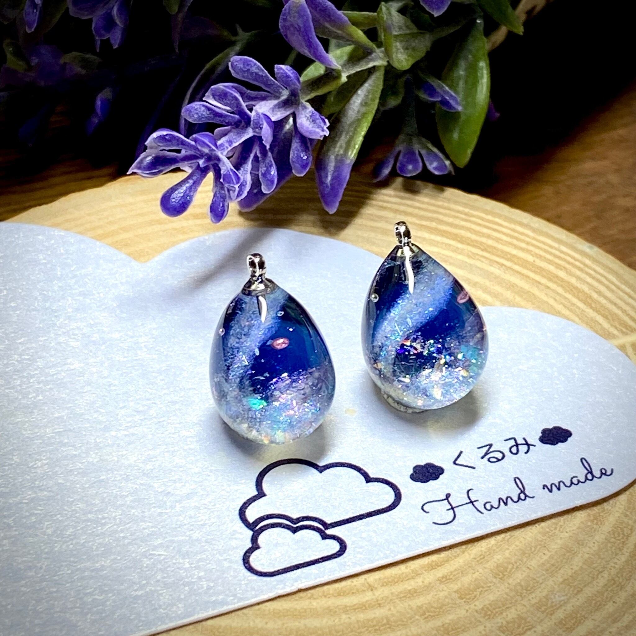 レジンピアス イヤリング 天の川 たまご型 16×12mm b