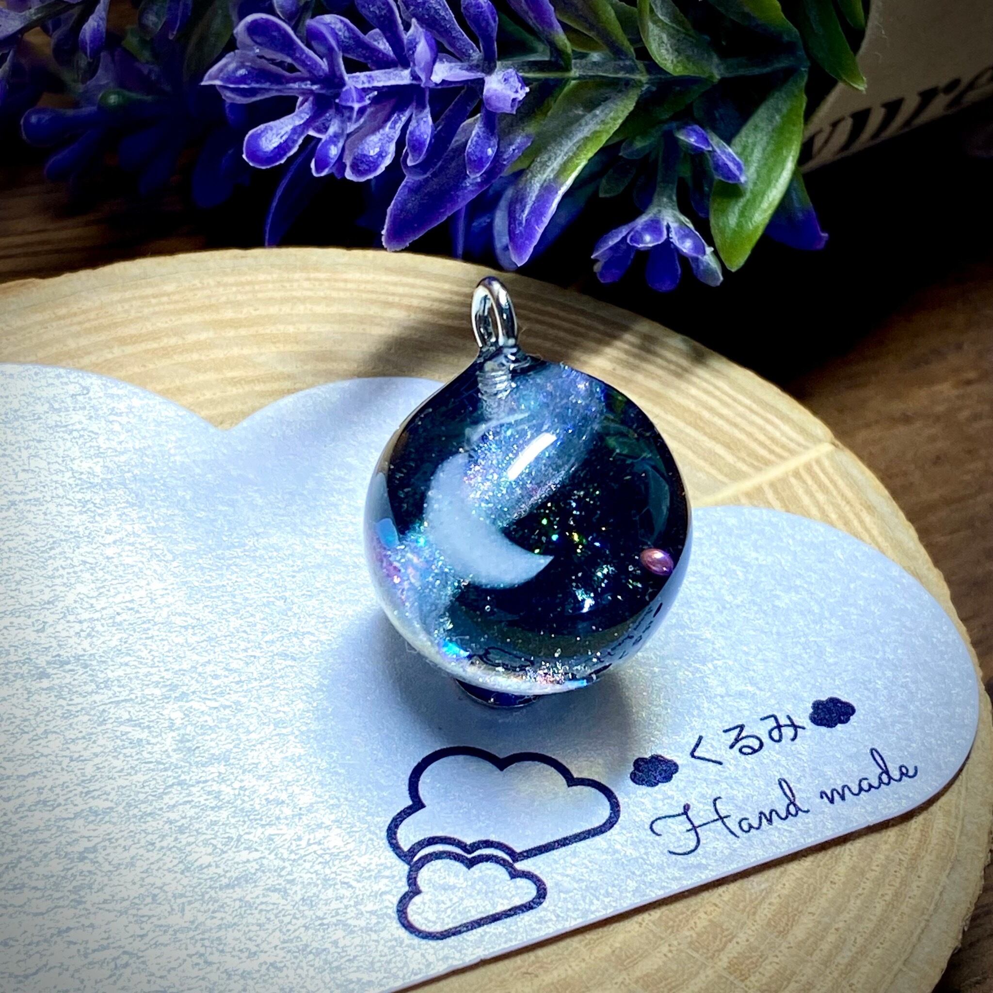 宇宙 三日月と天の川のまん丸なペンダントを作りました。