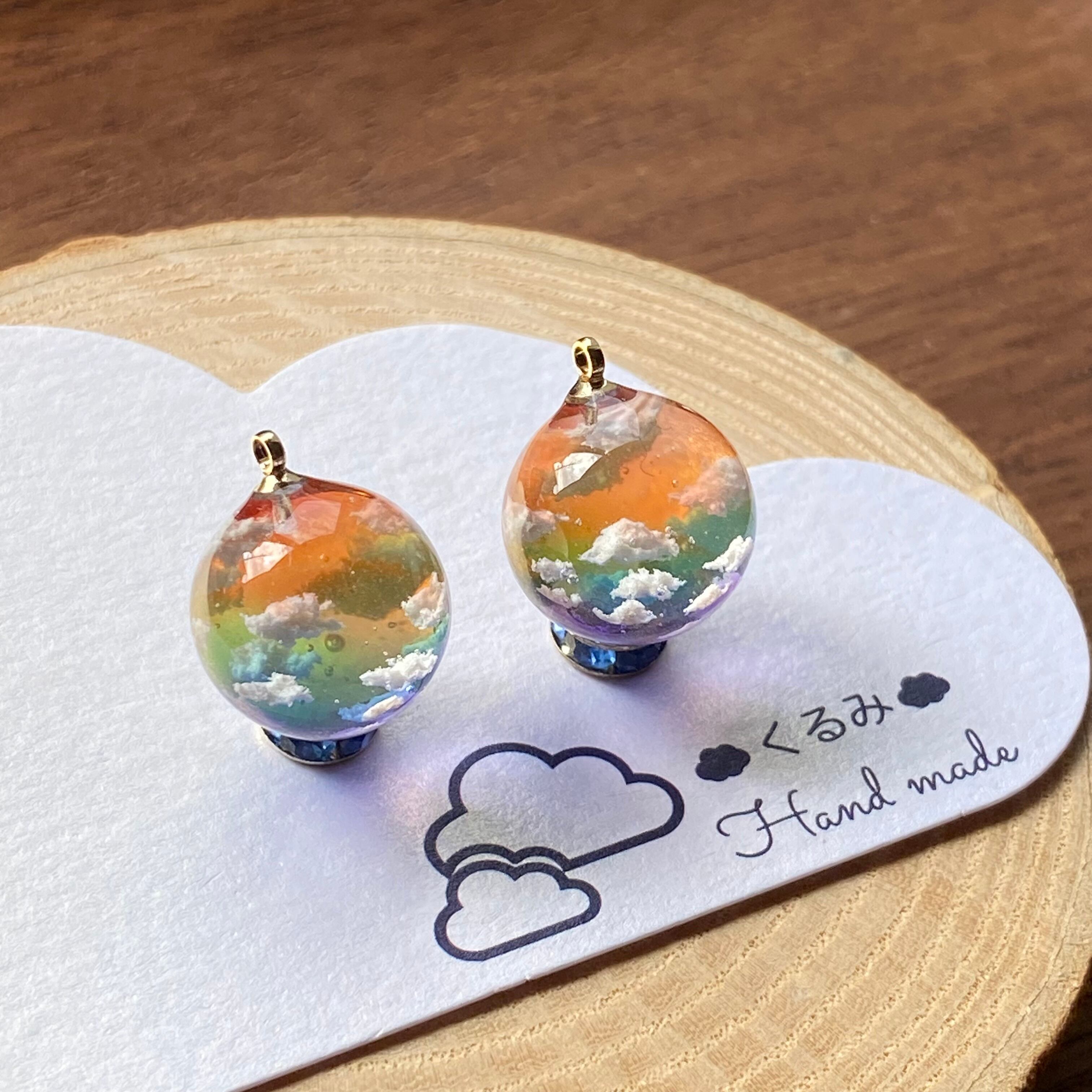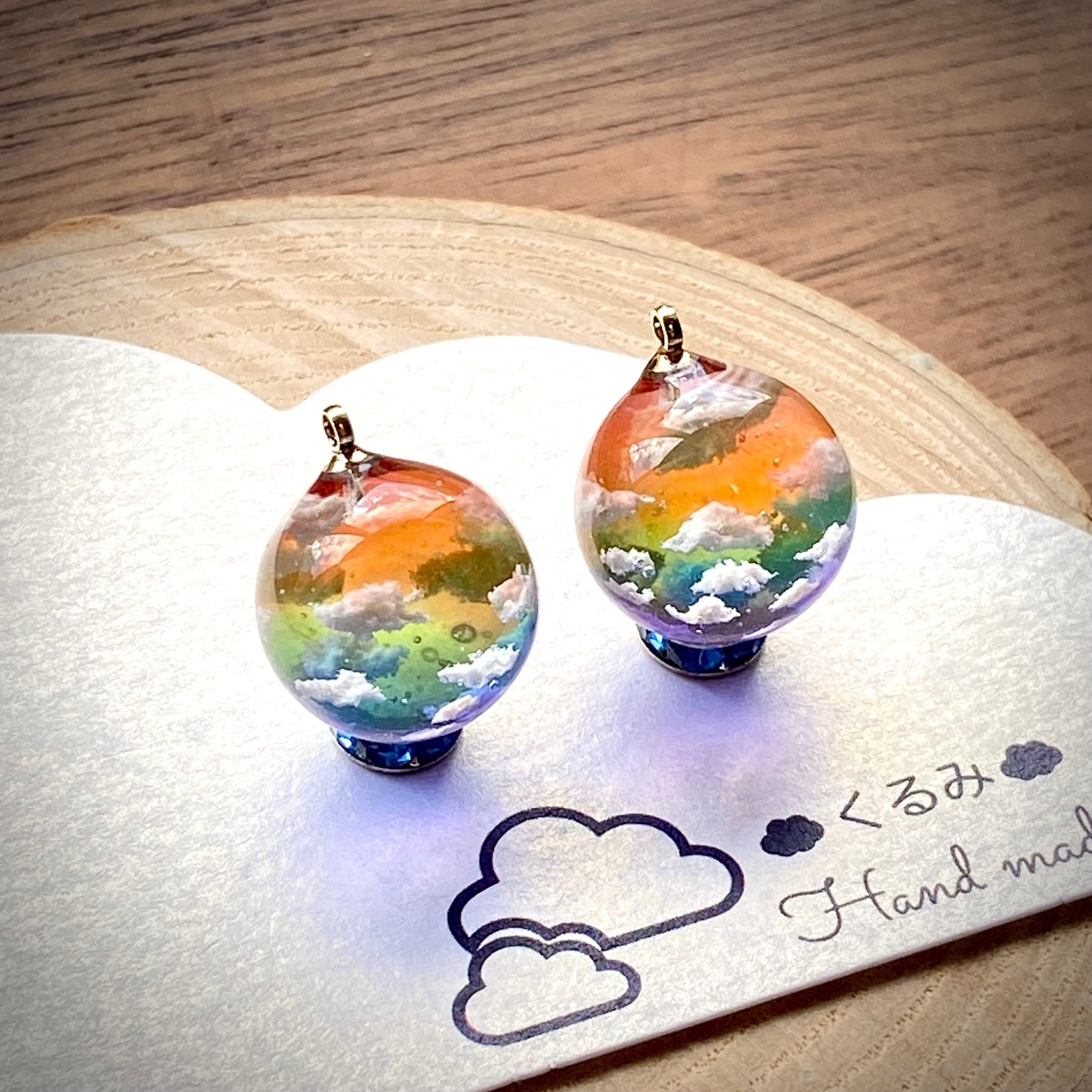 虹色の空をイメージしてまん丸ピアスを作りました。