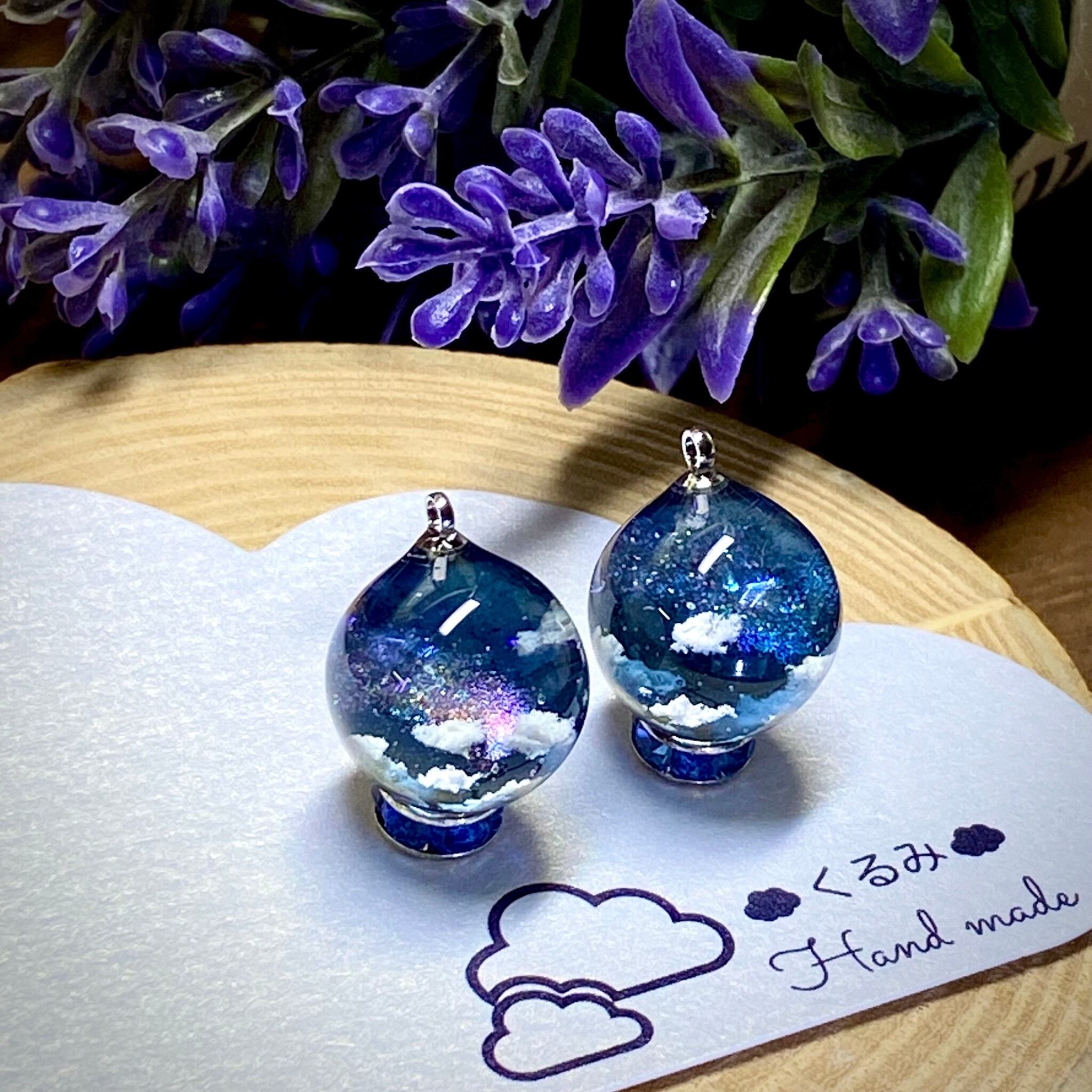 夜空と天の川をイメージしてまん丸ピアスを作りました。
