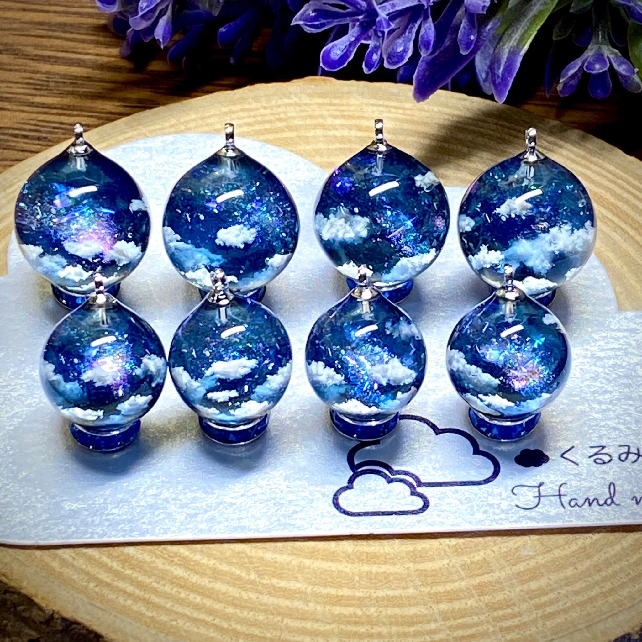 夜空と天の川をイメージしてまん丸ピアスを作りました。