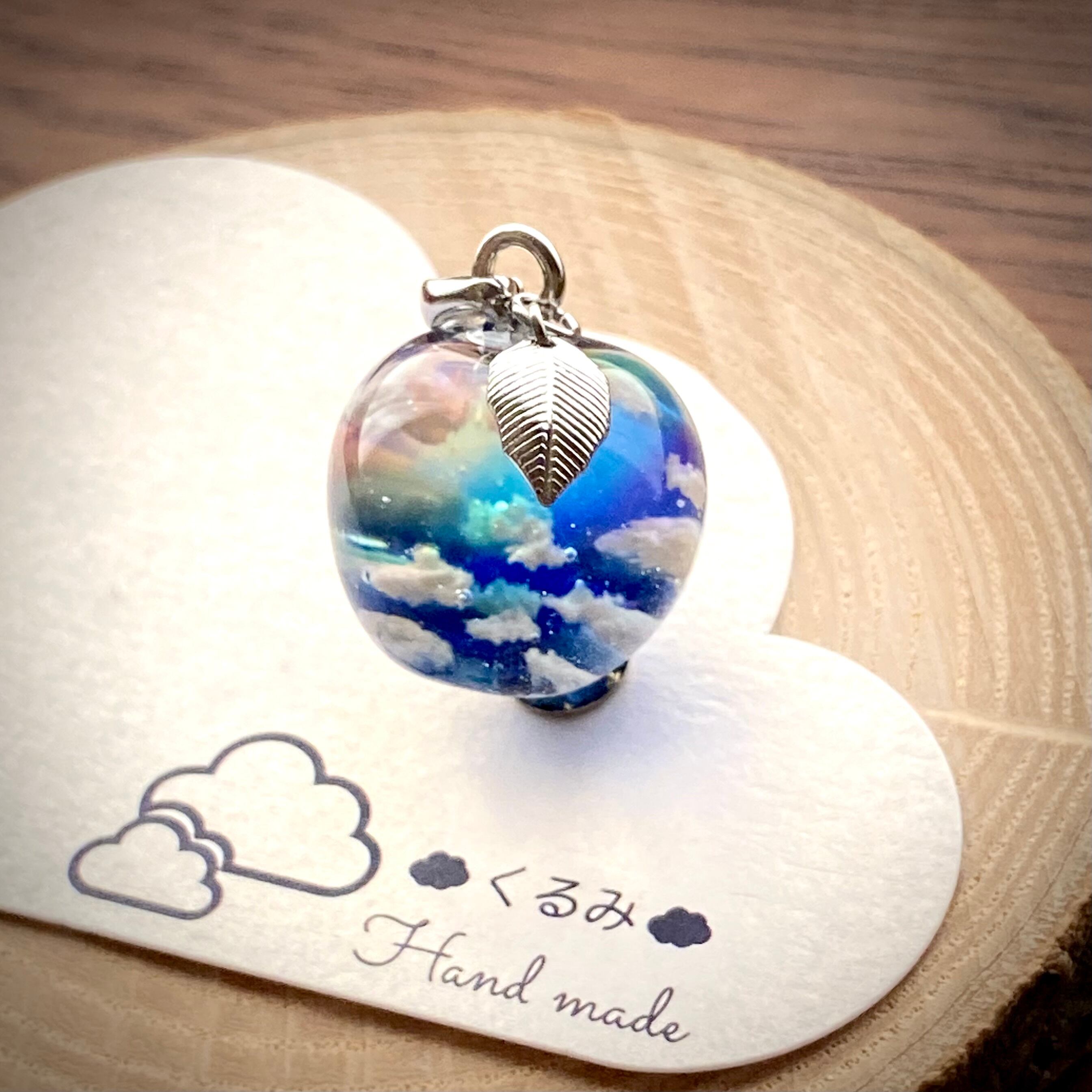 青空にかかる虹をイメージしてりんご型ペンダントを作りました。