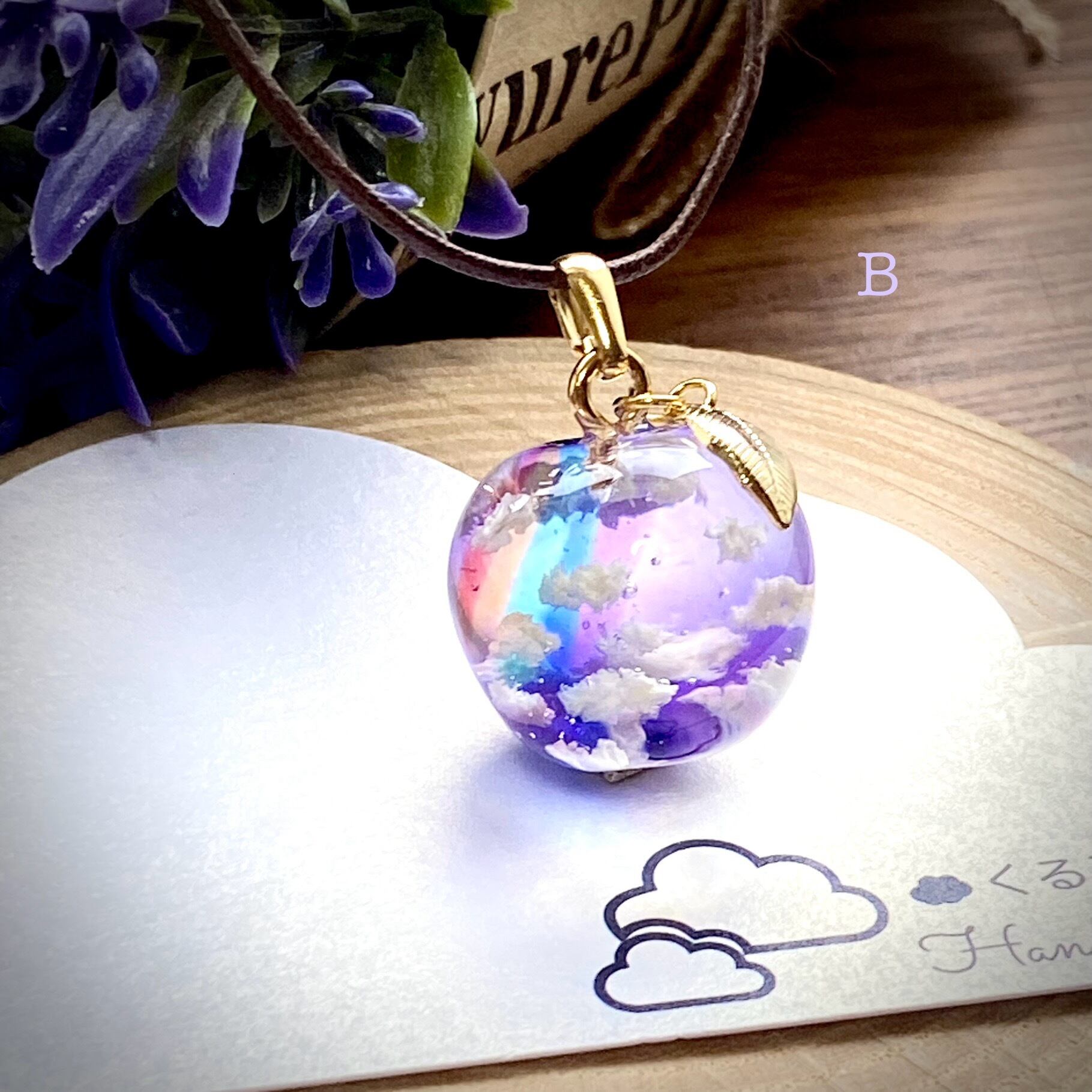 夕暮れ空にかかる虹をイメージしてりんご型ペンダントを作りました。