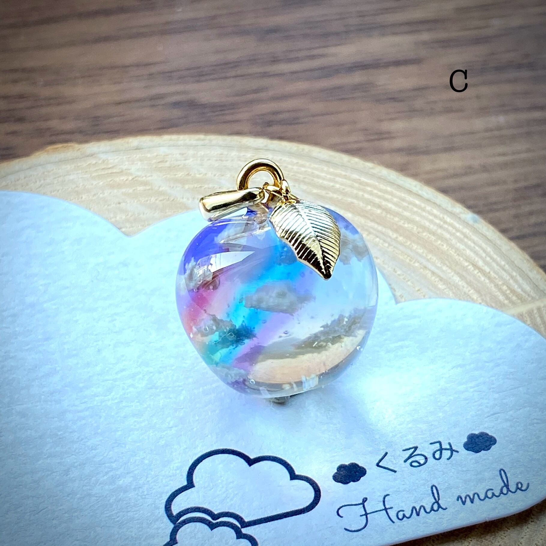夕暮れ空にかかる虹をイメージしてりんご型ペンダントを作りました。