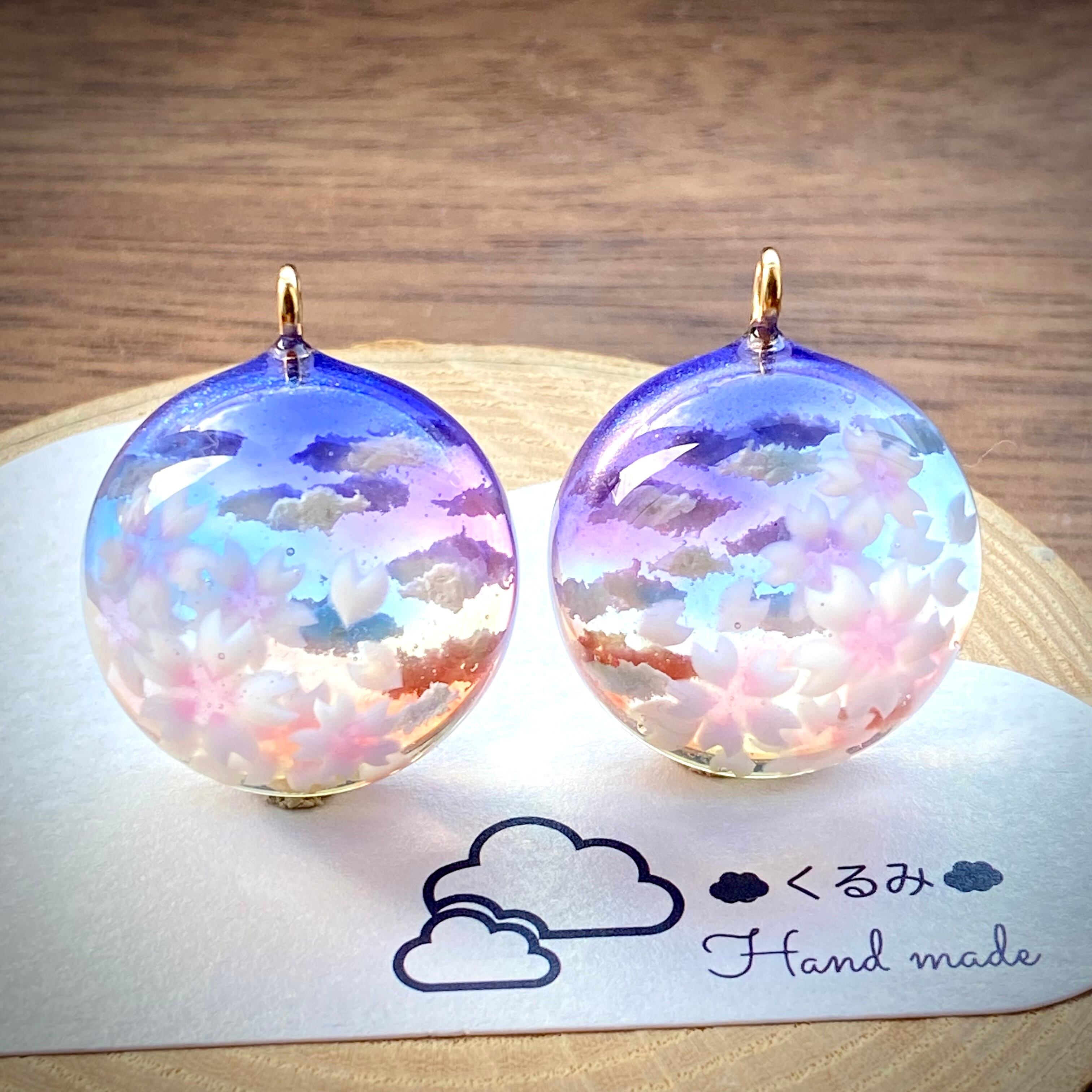 半球の雲レジン 夕暮れ空と桜 大きめ26mm A