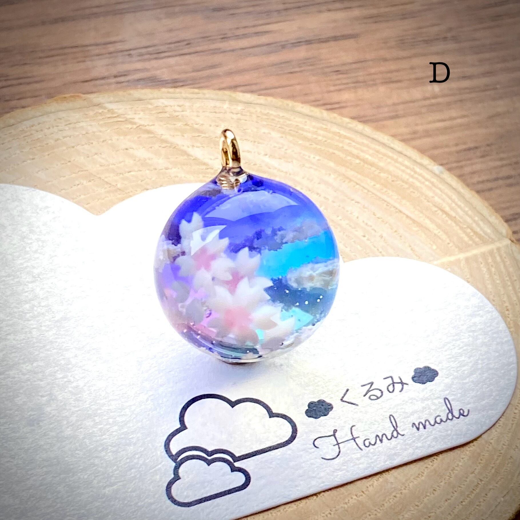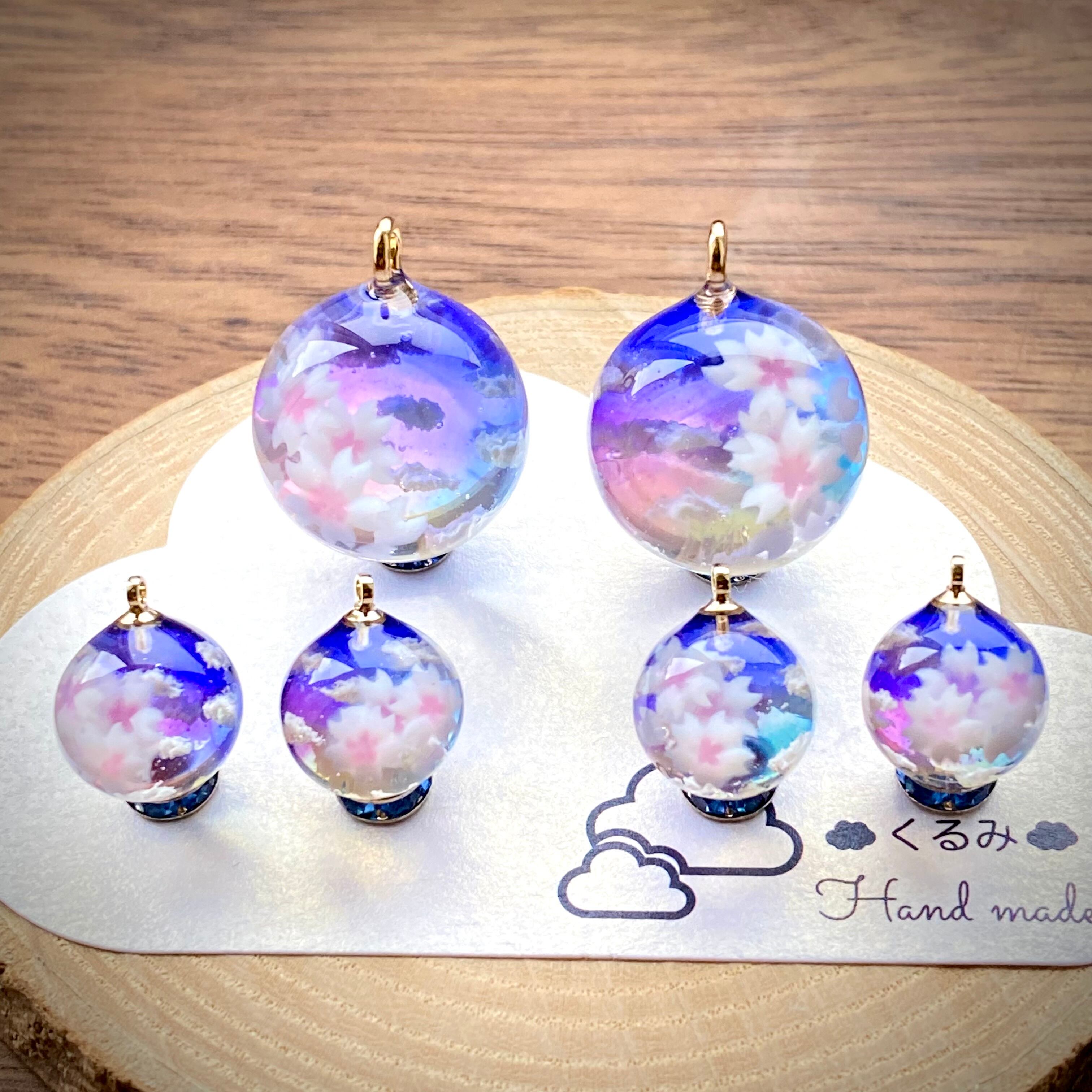 夕暮れ空と桜をイメージしてまん丸なペンダントを作りました。