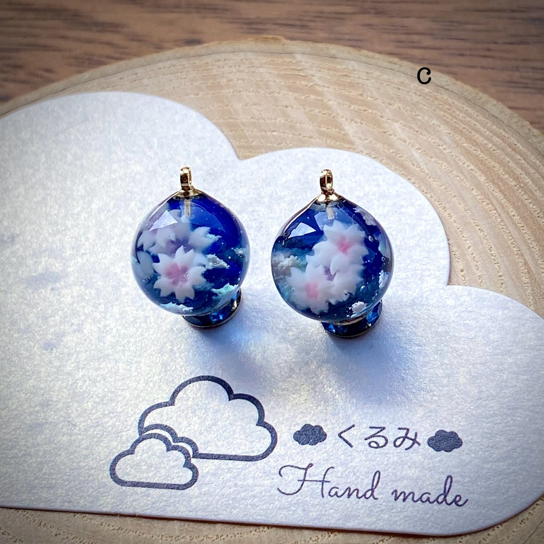 夜空と桜をイメージしてまん丸ピアスを作りました。
