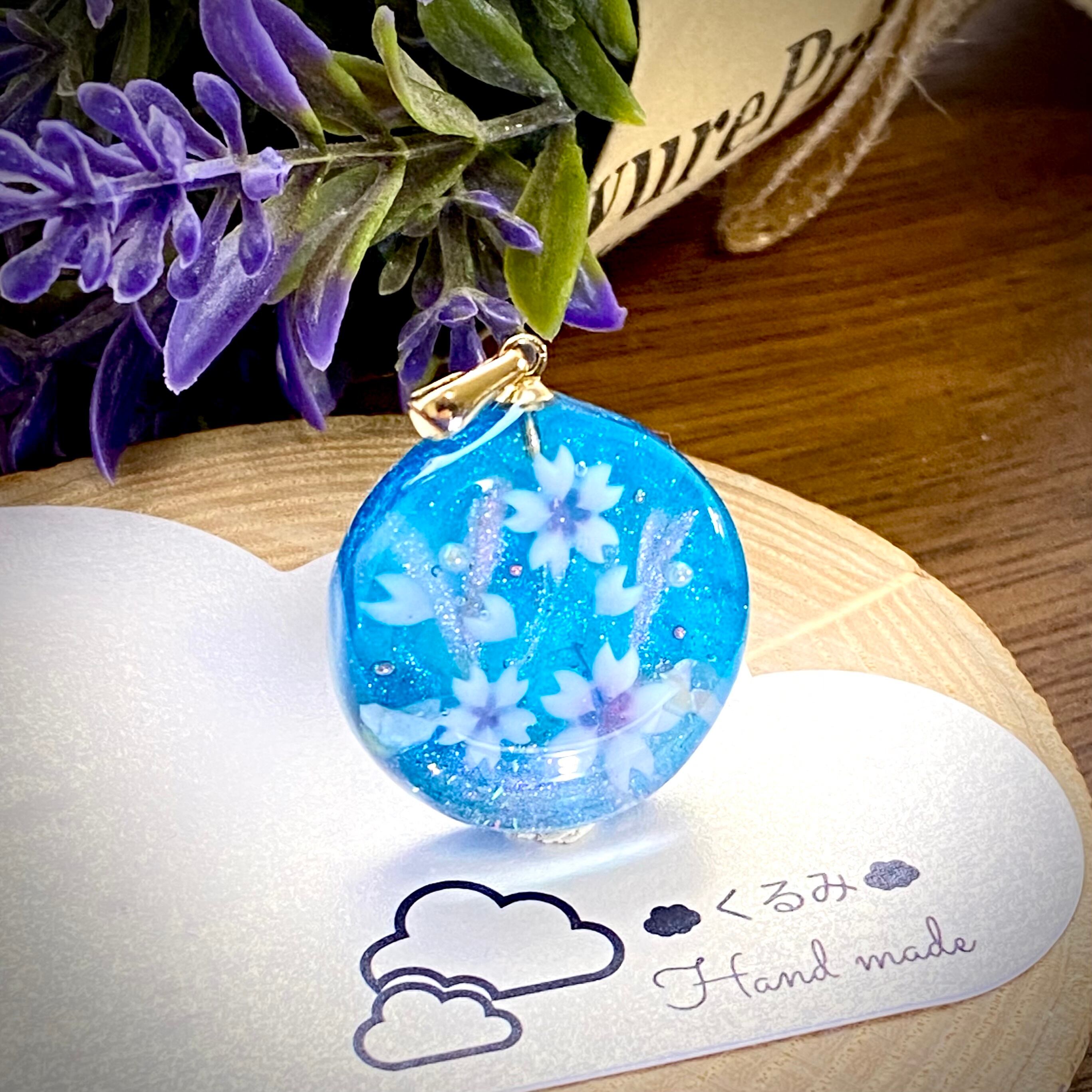 桜の花びらを閉じ込めたような丸プレートペンダントを作りました。