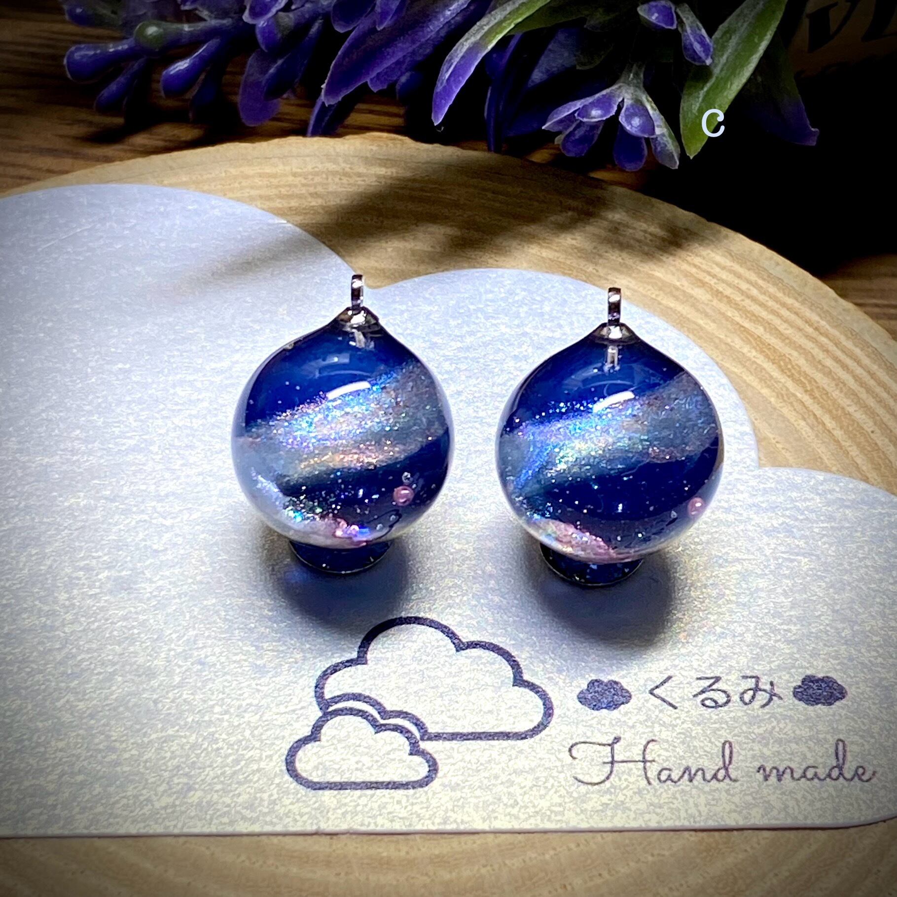 銀河と天の川をイメージしてまん丸ピアスを作りました。