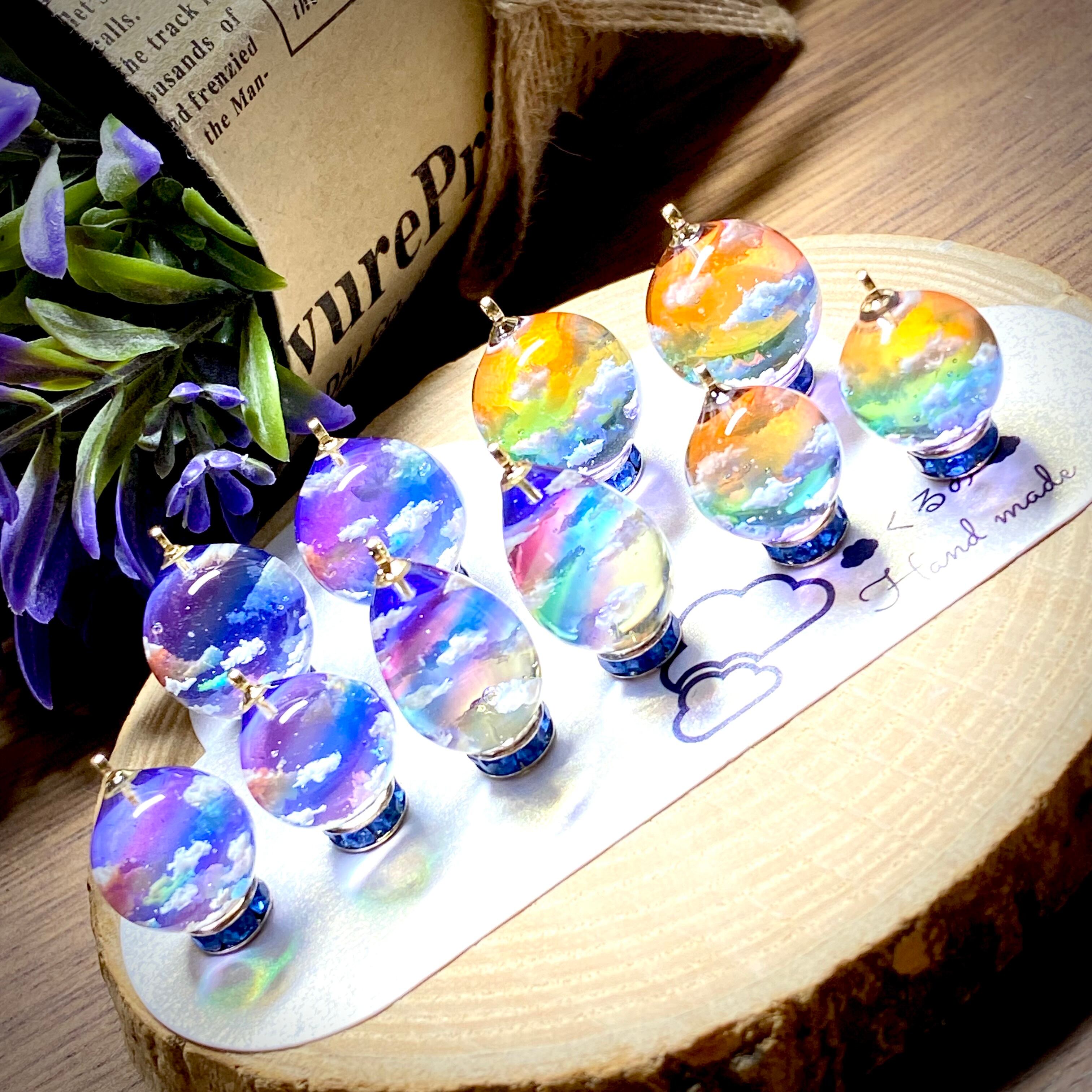夕暮れ空にかかる虹をイメージしてたまご型ピアスを作りました。
