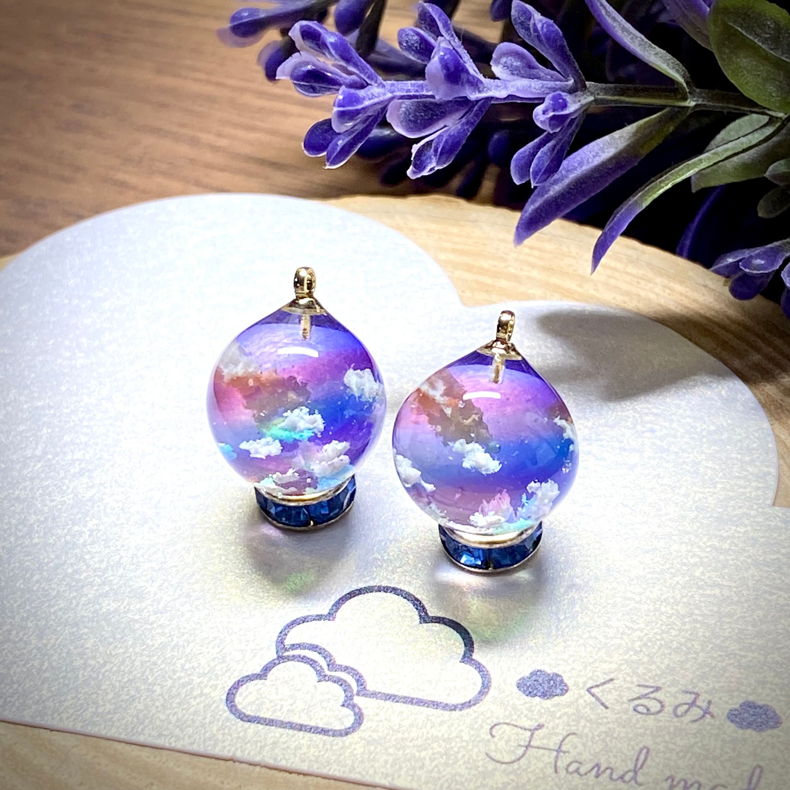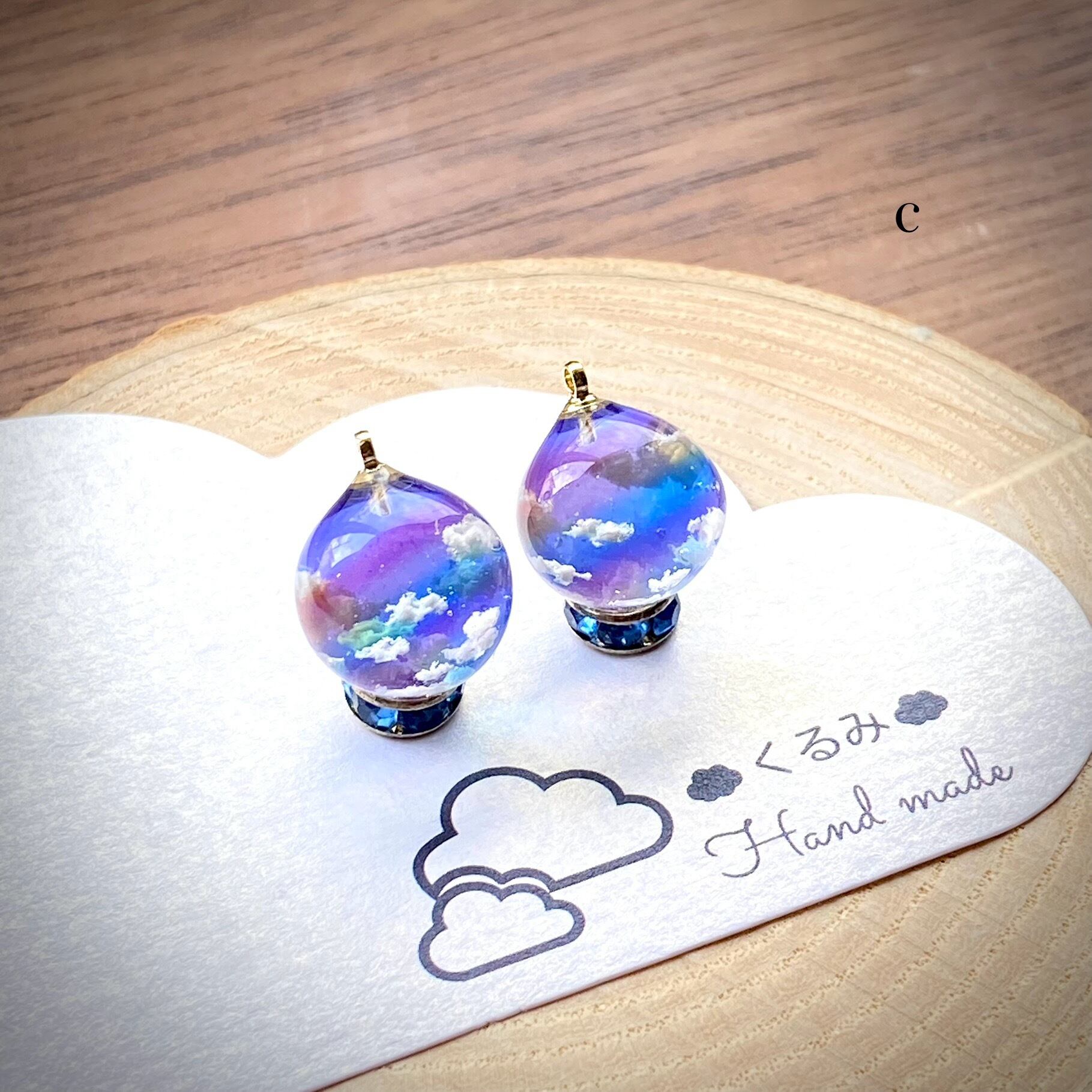 夕暮れ空にかかる虹をイメージしてまん丸なピアスを作りました。