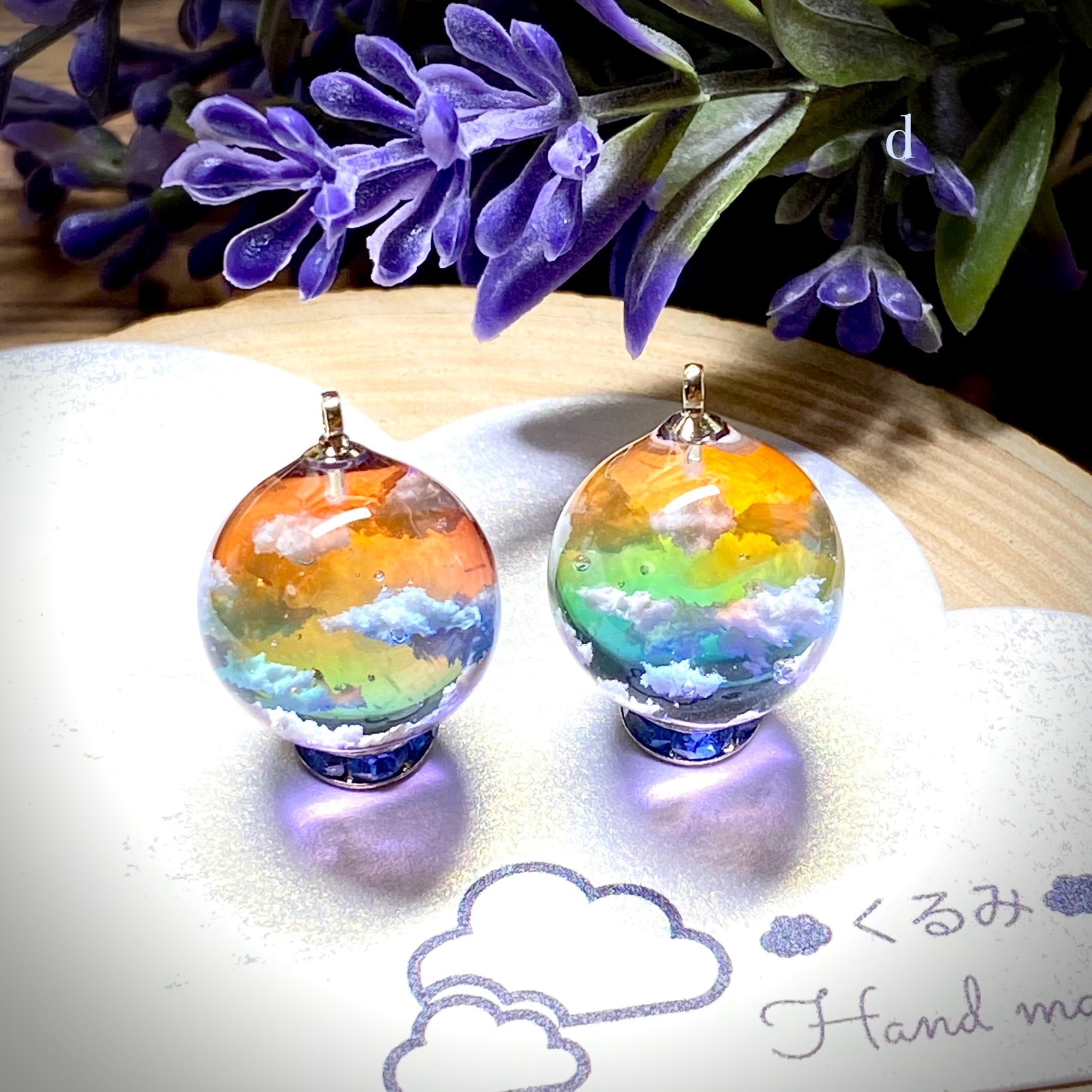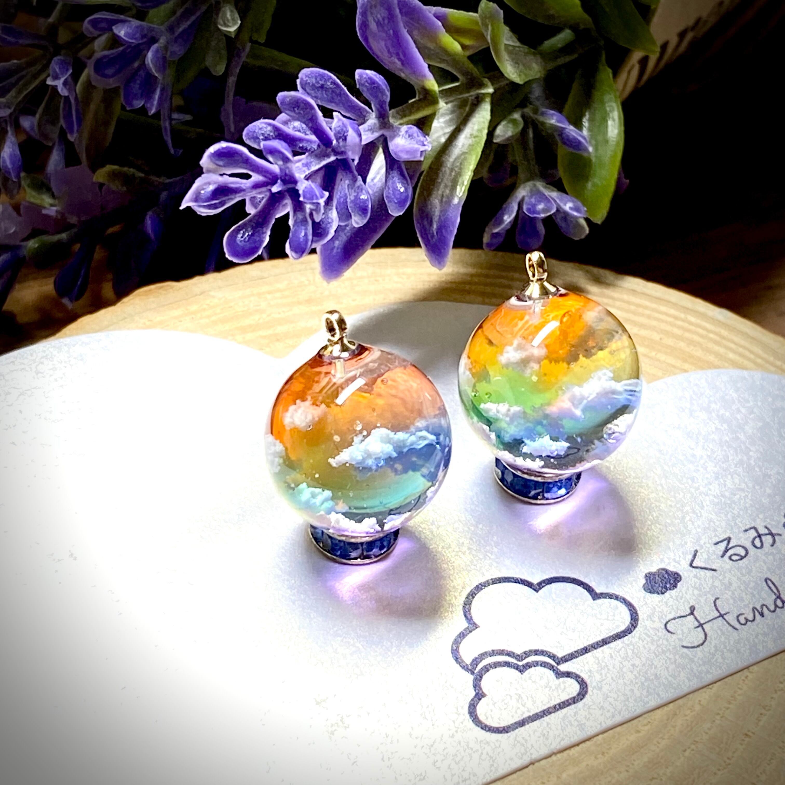 虹色の空をイメージしてまん丸ピアスを作りました。