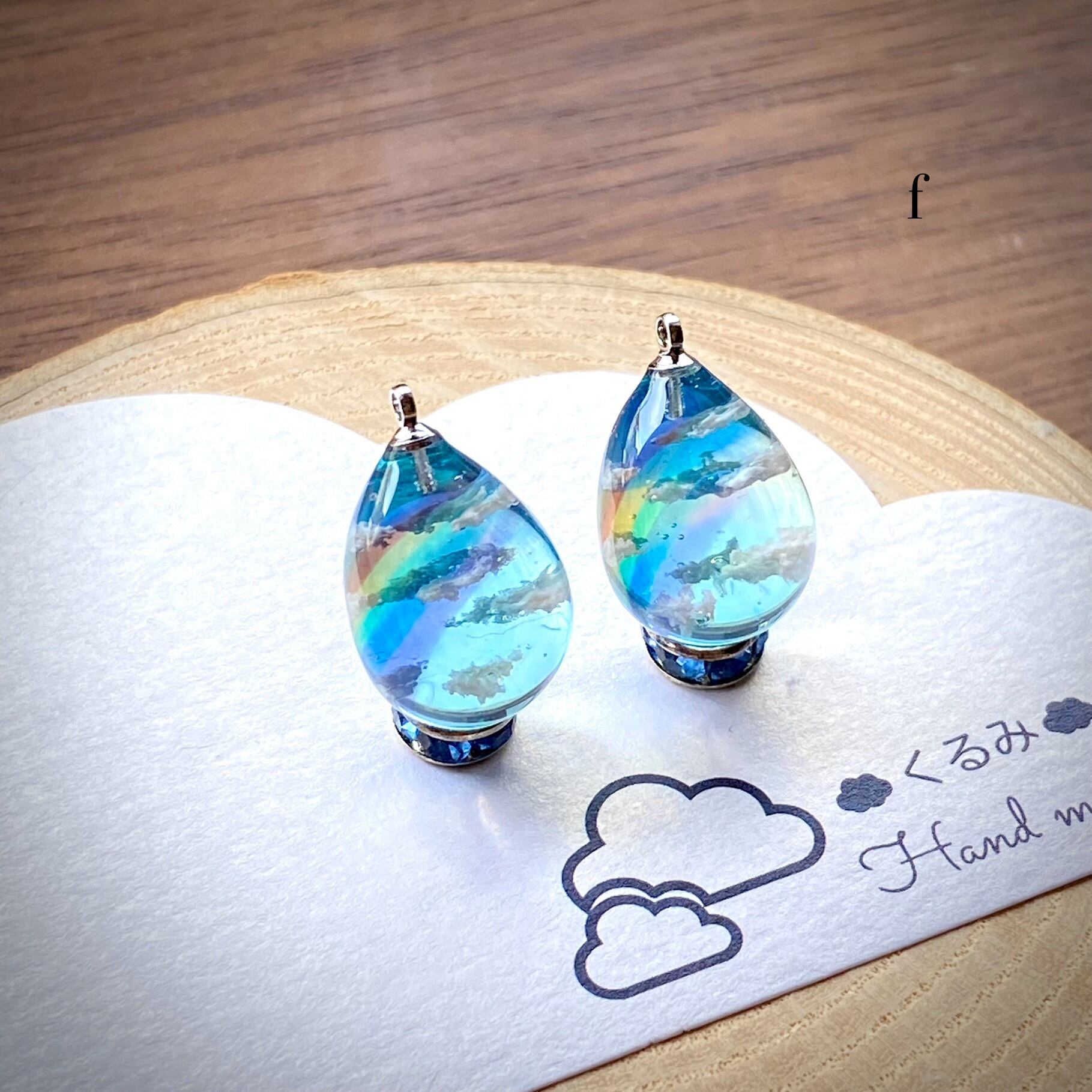 青空にかかる虹をイメージしてたまご型ピアスを作りました。