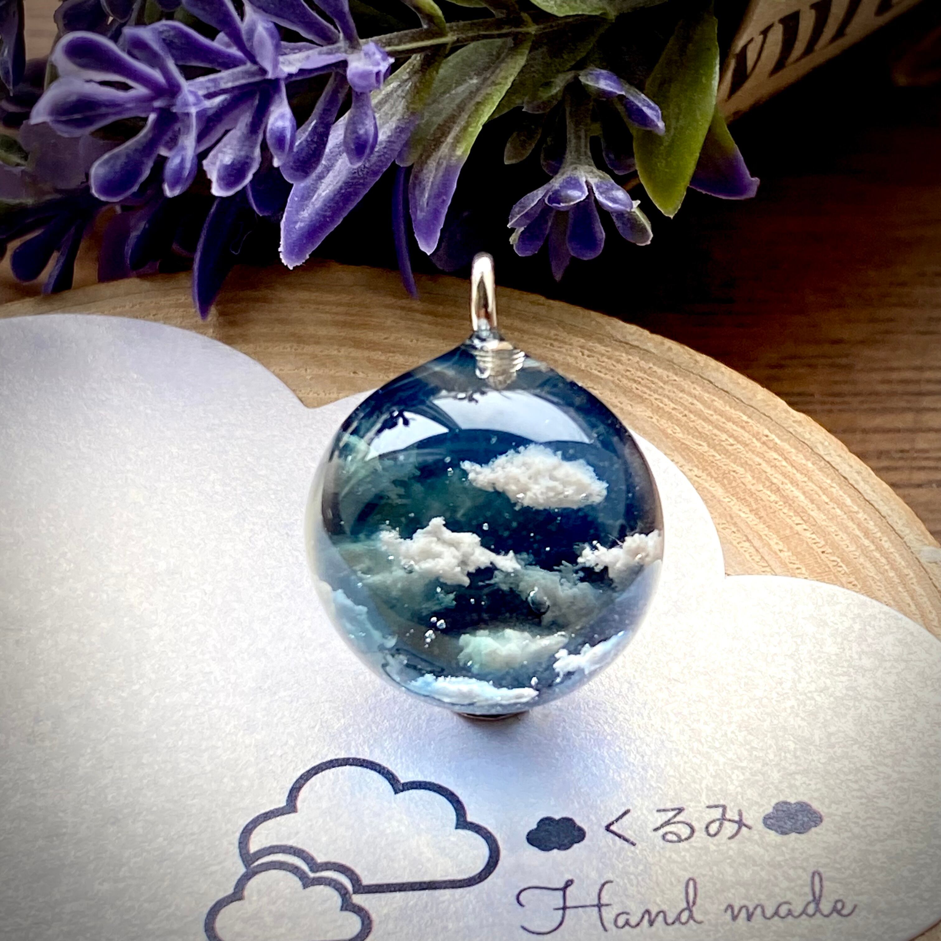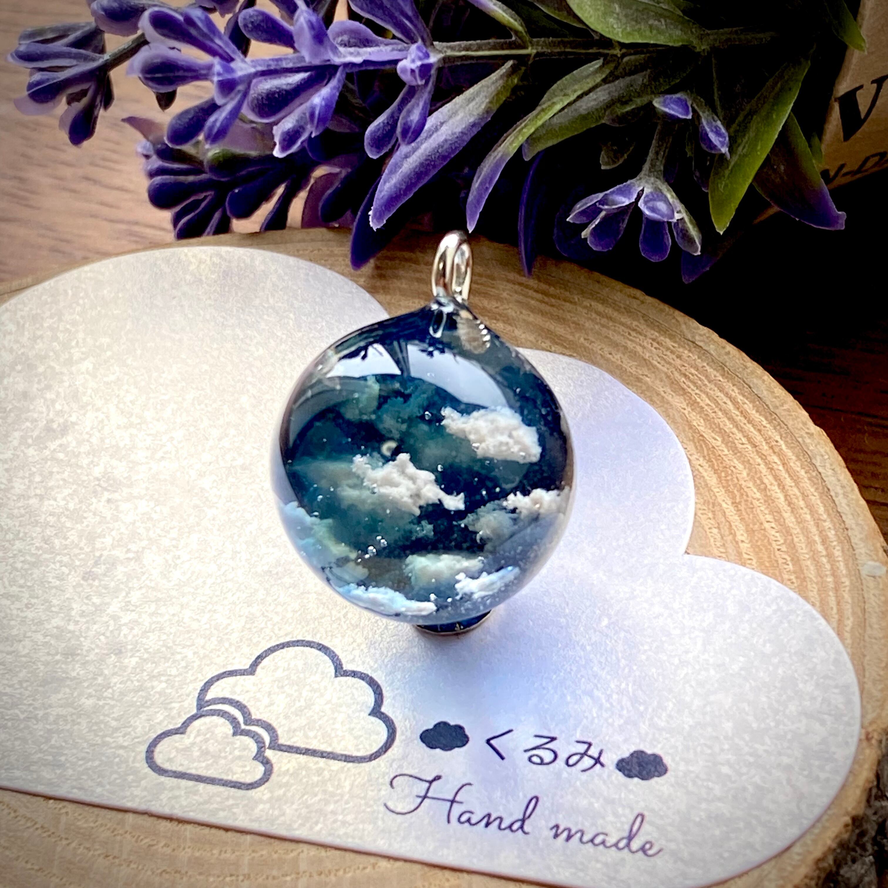 夜空をイメージしたまん丸ペンダントとピアスorイヤリングのセット作品を作りました。